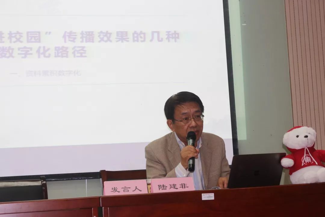 上海师范大学非遗传承研究中心主任、《非遗传承研究》主编陆建非的发言题目为《数字手段助力非遗进校园及其相对局限性》,通过翔实的数据指出非遗当下的受众是作为互联网原住民的00后学生,他们对数字化具有天然亲切感,而网络媒体是学生获取非遗信息的重要渠道。提升“非遗进校园”传播效果的数字化路径主要包括资料累积数字化,传播手段数字化,呈现形式数字化三种形式。但是对待非遗的数字化传播和传承要保持科学化态度。
