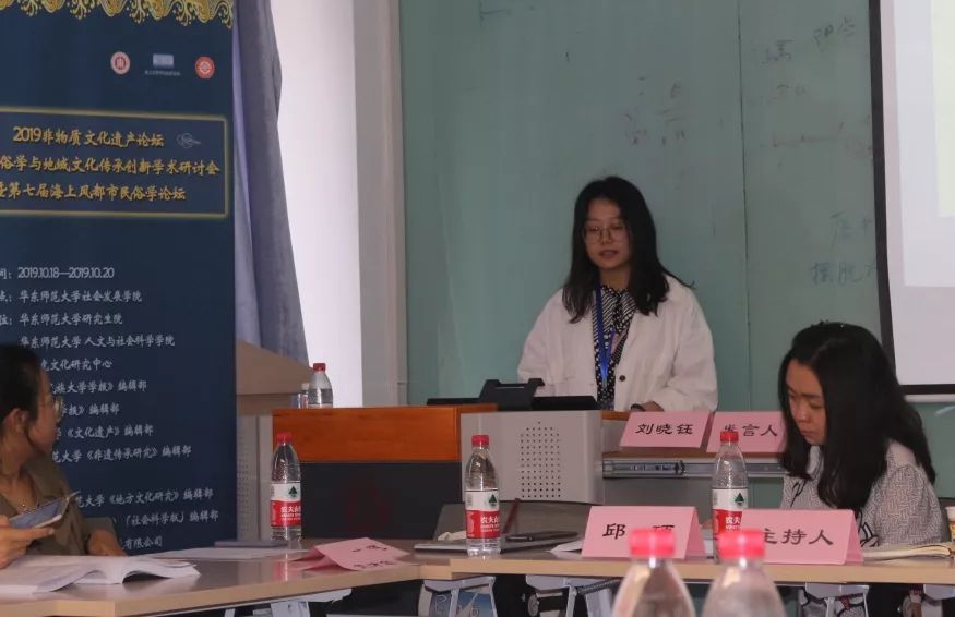 硕士研究生王颖发言题目为《技艺上的“感觉”:石牌非遗手工豆腐生产者的“身体民俗”》。她认为石牌豆腐生产技艺便一例典型的身体民俗,依托身体的参与,追求品质的同时,便是技艺升华为知识、经验。这种累积的身体知识、经验,无法言明的内在知识--身体性知识,是文本难以全部涵盖的,因个人的领悟、历练的不同,所呈现的结果往往不同,身体不再是被动的为人所动,它具有了自主、能动的一面,进而身体也充满了情感。
