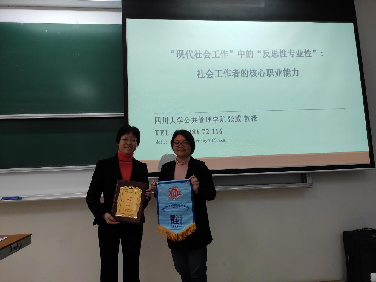 百场校级学术讲座第126场。张威教授带来了关于“’现代社会工作’中的’反思性专业性’:社会工作者的核心职业能力”的主题讲座,社会工作系副主任何姗姗副教授主持了本场讲座。