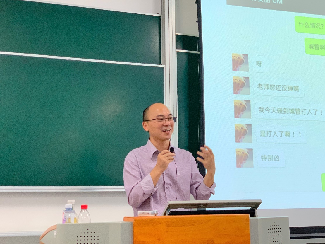 观察法作为资料收集的方式之一,包括了参与式观察和系统观察,其中,系统观察法兴起于上世纪70年代的城市犯罪率研究。徐建华老师通过二者对比,向同学们介绍了系统观察法的特点——较之传统的参与式观察,系统观察法的目的性更强,在过程中会运用现代技术协助观察,并在分析过程中采用变量编码的方式探究相关因素。为方便同学更深入地理解,随后,他分别以摩的司机被抢、警务商务广告和城管—小贩冲突这三个研究带领现场师生走进系统观察法。