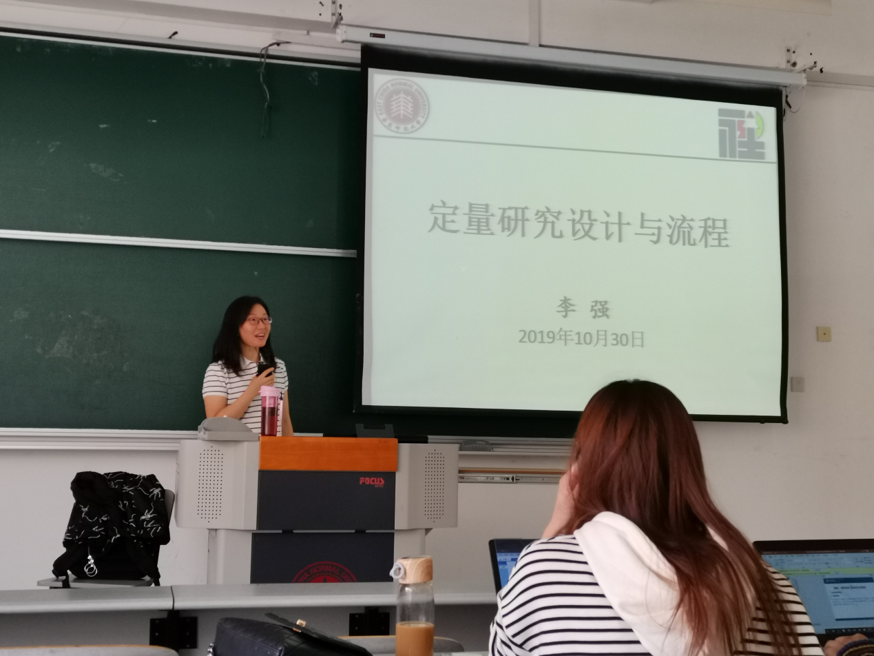 10月30号下午2点,科研训练营的第二讲——“定量研究设计与流程”正式开讲。此次与大家分享经验的是人口研究所的副所长,李强老师。开场时李老师以自己为例,述说了一个文科生学定量的故事,鼓励大家不必害怕数字、分析,打消了不少同学们对定量研究的顾虑。