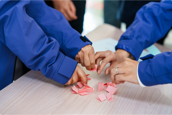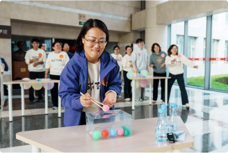 首个项目“公鸡下蛋”趣味十足,参赛教师腰间系满乒乓球的小盒子,通过跳跃、扭动等创意动作让小球掉落,计时最短组获胜,夸张又可爱的姿势引得全场掌声不断;“踩气球”项目中,各队以三人一组依次出战,噼里啪啦的气球爆裂声与欢呼声交织,留下气球最多的队伍成功晋级;“筷子夹乒乓球接力”考验着老师们的手眼协调与团队衔接,小心翼翼的夹取、快速传递的默契,让赛场节奏张弛有度;“叠纸杯接力”则将灵巧与速度完美结合,老师们高效完成纸杯的搭建与收纳,争分夺秒间展现协作风采。