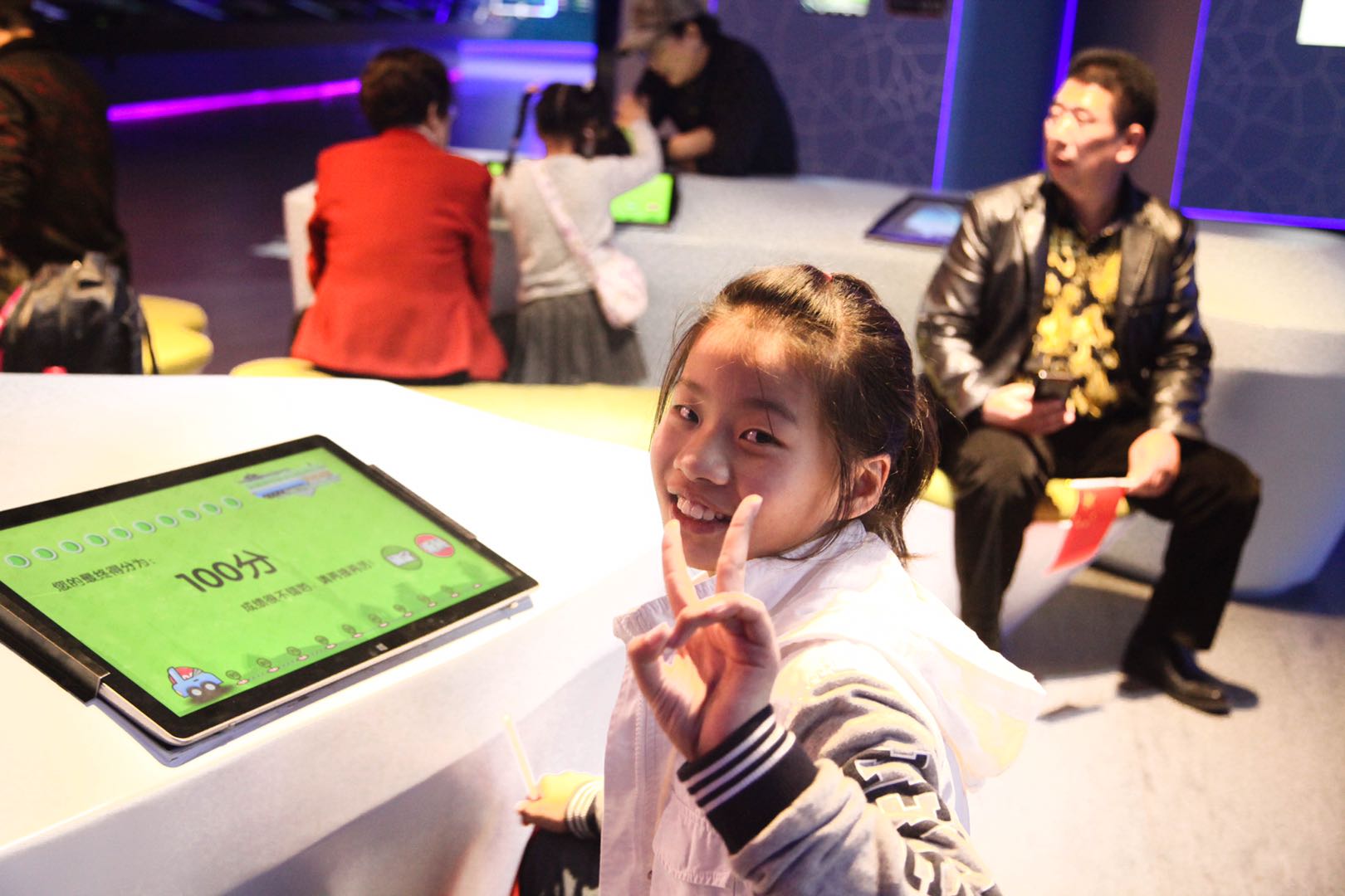 四楼的体验区是孩子们最喜欢的地方,有许多游戏和体验项目,孩子们兴奋地玩起了小游戏,这些游戏里有关于垃圾分类的,环境保护,科技发展的……大家在欢乐的游戏过程中全方位,多角度地了解了上海的过去,现在和未来,还收获了不少知识。
