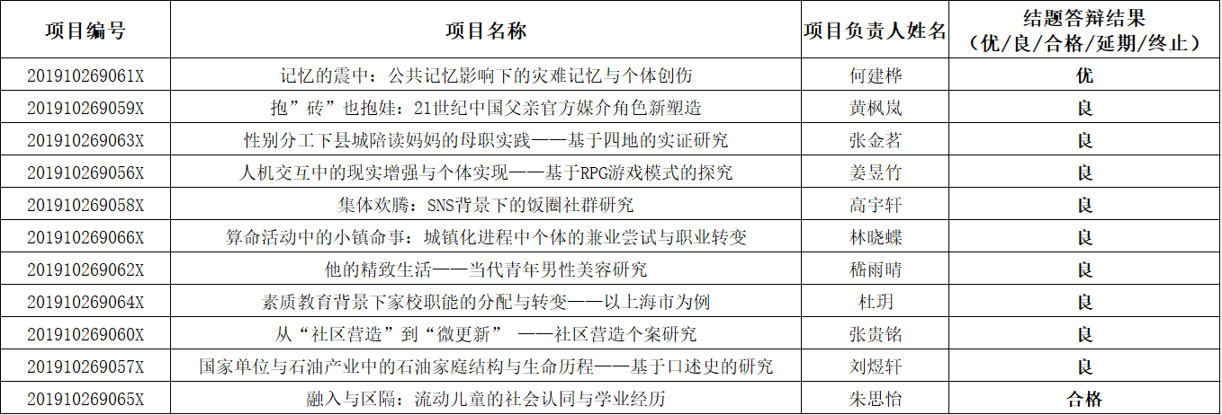 2019年11月6日举行了“本科生创新创业训练培育项目”的结题答辩,现拟公布答辩结果。