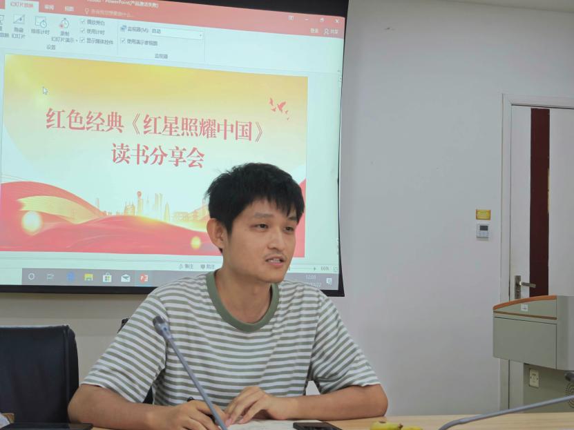 “教风学风主题建设系列活动”之一。本期由何欣阳担任主讲,研读埃德加·斯诺的经典著作《红星照耀中国》,带领在场的全体党员同志重温了一部记录中国共产党人初心与奋斗的生动史诗。
