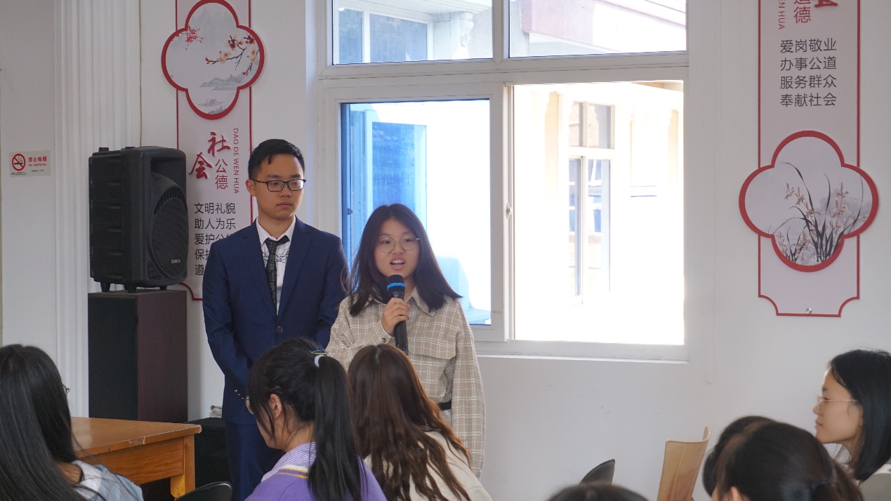 随后,本季“哥姐”计划的负责人钱璟洁同学进行发言。她强调了“哥姐”计划不是单纯地为小朋友们做义务家教,除了给予他们学业上的帮助之外,志愿者们更要学会观察他们成长路上遇到的烦恼,引导他们排解情绪,解决问题。最后,钱璟洁同学表示:今年志愿者团队“人丁兴旺”,她对本季的活动非常地期待。