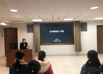 下午2点半,师生一行抵达了上海市博物馆,上博工艺研究部馆员张经纬热情地接待了大家,并开展了一场以“关于博物馆的十个问题”为主题的报告,带领大家深入浅出地综览了上海博物馆的“前世今生”。张老师以自身人类学的专业背景为出发点,将博物馆的日常陈列比作前台,将这背后的运作机制比作后台,提示大家只有从“参观的前台”走向“看不到的后台”,才能真正认识博物馆。张老师首先为大家介绍了上海博物馆的组织架构,一个各部门各司其职的有机组织清晰地呈现在大家眼前,使大家惊叹往日里气势恢宏的博物馆背后的精细分工与有序运作;随后张老师为大家详细介绍了上海博物馆的艺术定位,即作为古代艺术博物馆的殿堂,陈列展览中华古代文人墨客等的雅致生活,向世人传递中华艺术的精髓与韵致。上海博物馆的青铜收藏堪称江南之最,博物馆的镇馆之宝——大克鼎也曾经登过《国家宝藏》。而张老师却向我们道明了这些珍品的“来之不易”:这些瑰宝出土于上海本土的极少,而很多都来自于二十世纪五六十年代的大炼钢铁运动,当时上海的钢铁厂汇聚了全国各地的所谓“废旧钢材”,因为不忍看着大量历史珍品就此销匿,上海博物馆的专家们赴各工厂“蹲点”,这才将它们从即将被炼制的废旧钢铁中“抢救”回来。除此之外,张老师还为大家介绍了文物保存、文物运输、会展准备以及博物馆工作人员的准入门槛等。张老师诙谐的介绍深深地吸引了大家,也使得大家全方位地了解了上海博物馆的历史与当下。