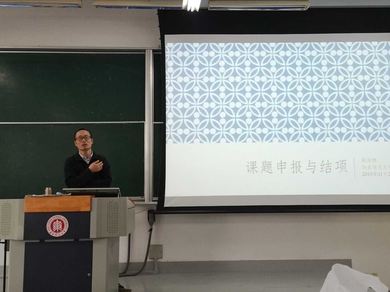 副教授姚泽麟老师在二教102,为同学们带来了一场“课题申报与结项”的讲座,来自各个学院的本科生和研究生参与了本次讲座。