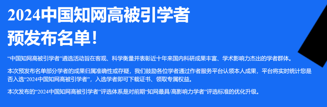近日,中国知网旗下的中国科学文献计量评价研究中心公布了“2024中国知网高被引学者”榜单。该榜单基于中国知网收录的国内学术成果,首次进行学者学术影响力的客观评价。经过定量数据统计、遴选方案评审、学科专家调研等多轮严谨筛选,最终发布了“2024中国知网高被引学者”预发布名单。