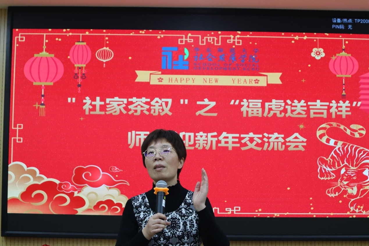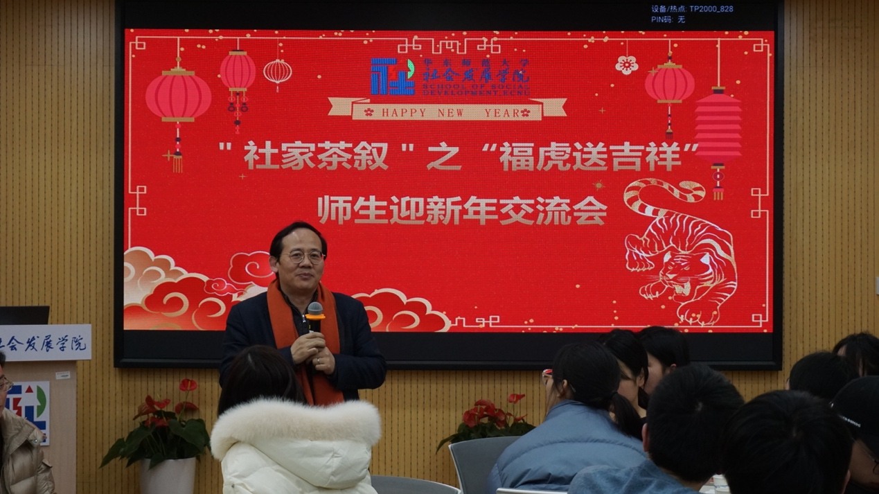 党委书记熊琼对此次活动寄语。熊琼老师希望各位同学树立起专业荣誉感,提醒同学们自身的专业发展与国家未来紧密相关,并表示有任何困难可以随时与老师们联系、交流。熊老师鼓励同学们在新的一年“一起向未来”,共同建设社发院这个学术共同体与温暖大家庭,并祝福同学们在虎年虎虎生威,更有生气、更有朝气。