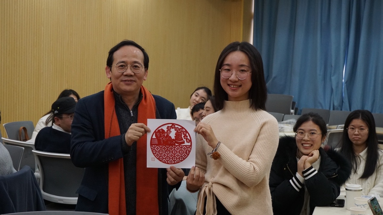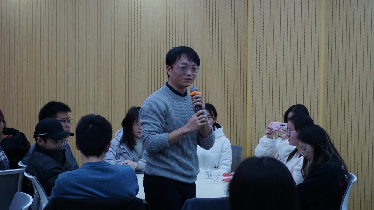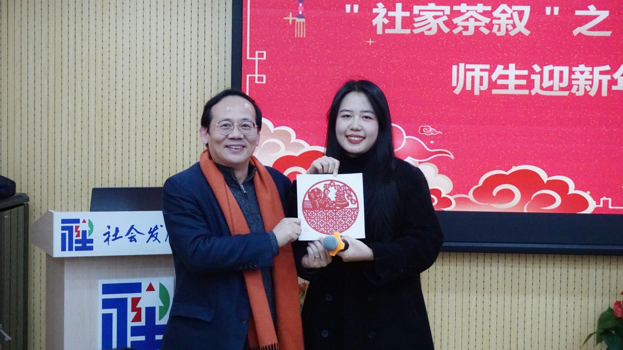 紧接着,随着“幸运橘子”的传递,师生共同回顾旧年、展望新年。各位同学纷纷感谢学院提供了“社家茶叙”这一交流平台,收获很多,也结合自身经历,给出了2021年的关键词。其中,2021级本科生杨慧杰以“迷茫”与“坚持”总结2021年,经历了学业的迷茫,但更感受到坚持的魅力。2019级研究生张建民以“在开始中结束”与“在结束中重新开始”总结2021年,表达了对社会学的兴趣与继续深造的想法。2020级博士生范筱嫣表示自己在不确定性中找到属于自己的确定性,在疫情中开始博士学业,充满不确定性和焦虑感,但在社发院感受到专业性与温暖,成为有感情也专业的学术人。文军老师也为各位同学们送上了新年礼物。