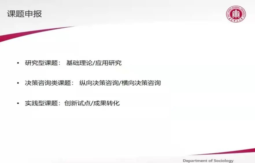 不同类型的课题选择,意味着不同侧重的课题申报书撰写要求,对于研究型课题,重点是突出其研究性。对于决策咨询类课题,重点是发现问题,并提出有效且可行的对策。对于实践型课题,重点是突出其实践上的创新性、应用性。
