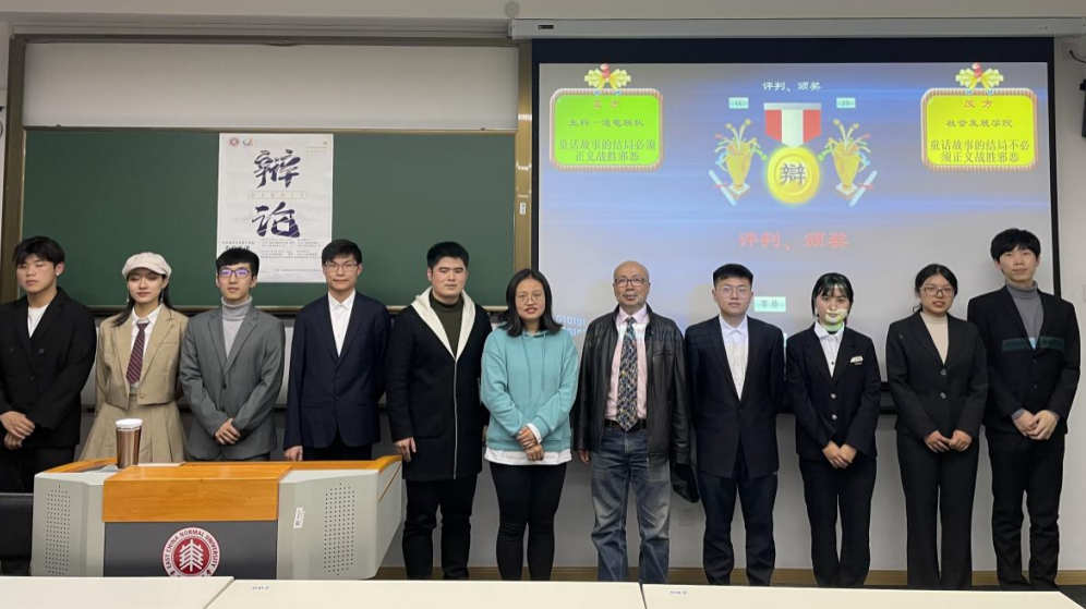杨嘉浩、王梦圆、侯洁莹、陈益豪四位辩手勇担重任,直面生科——通电联队。本次辩题围绕“童话故事的结局是否必须是正义战胜邪恶”展开,木瓜视频