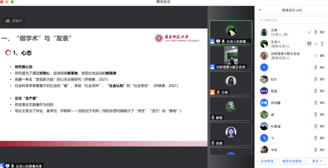 在本期科研训练营活动中,杨洋学姐与李安琪学姐结合自身的科研经历,向同学们分享田野调查与学术研究相关知识。相信同学们听完两位学姐的分享后收获满满,希望同学们通过本次课程学习,掌握到更多关于科研的基础知识与实用性技巧,并在以后的科研中将这些经验付诸于实践。