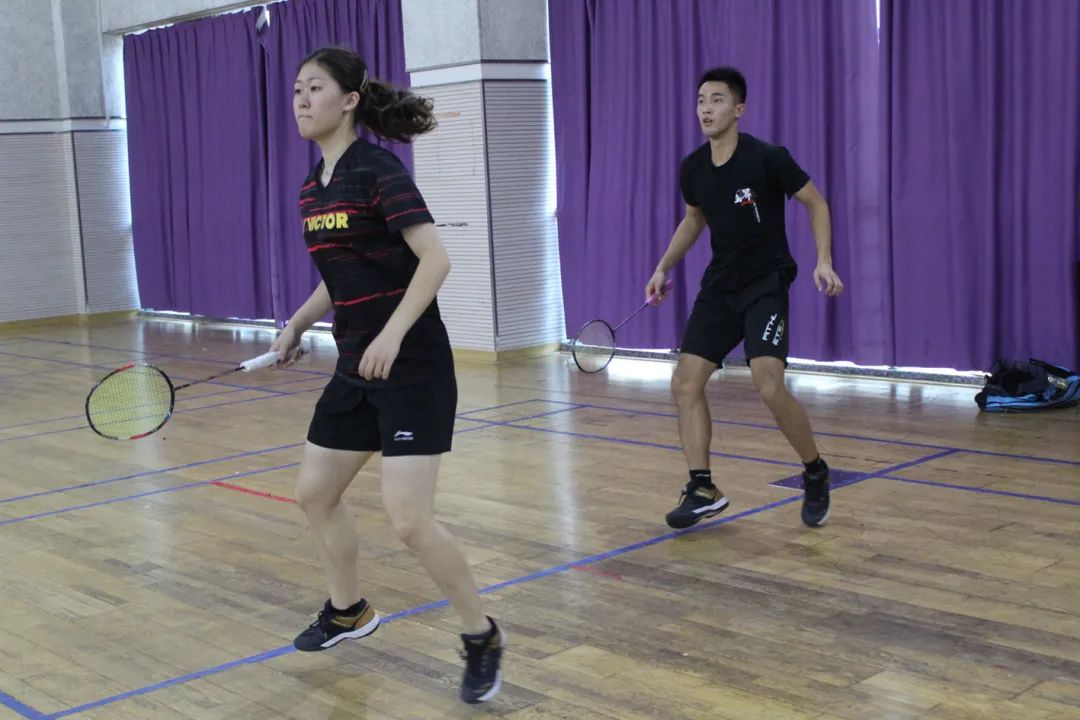 之后,由蓄势待发已久的双打选手进行比赛。他们高昂的斗志与活力充溢着运动场,而每组选手之间独有的默契更是紧紧凝聚着彼此,完成一次又一次出乎在场人意料的绝妙配合!迅捷、灵动,他们轻盈地变换脚步,侧身、跳跃,他们尽情舒展身形,每一次进攻与防守都是队伍间激烈的角逐,充分展现出选手们各自的神采飞扬。