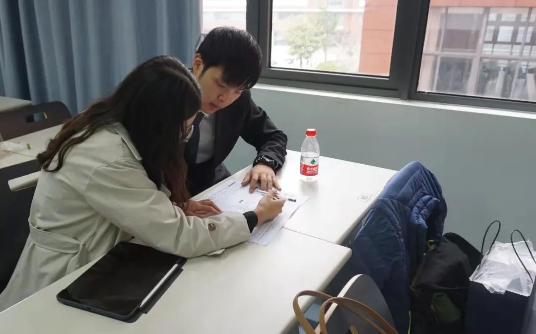 分享结束后,与会的同学们也带上个人的纸质版简历,请王谦卓老师和蔡媛老师提供修改的意见。
