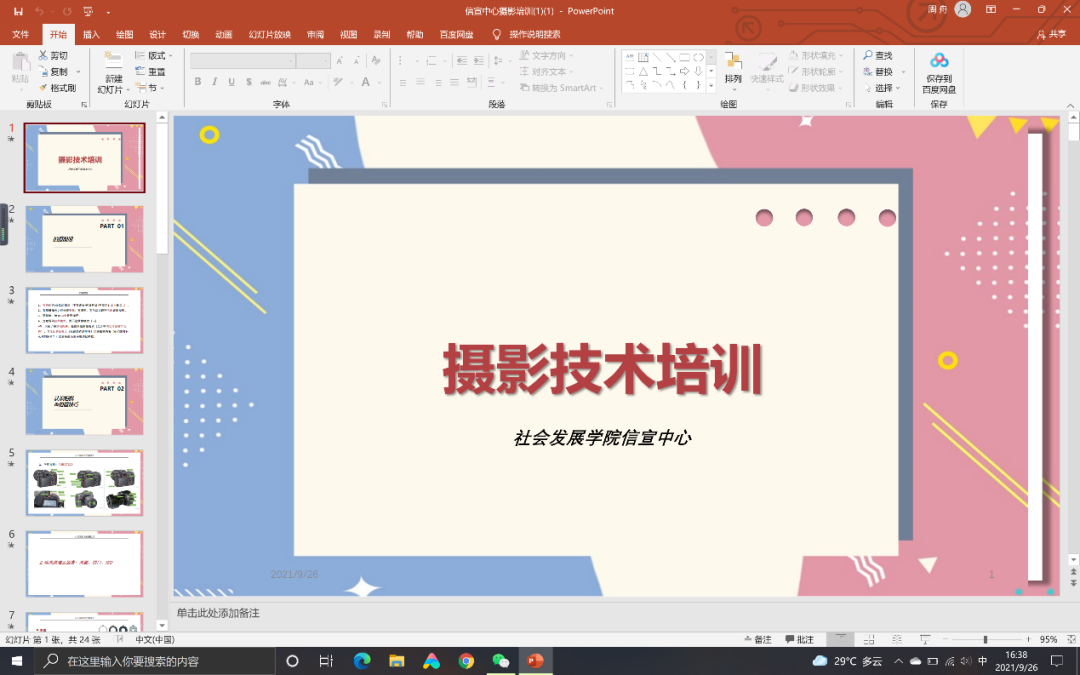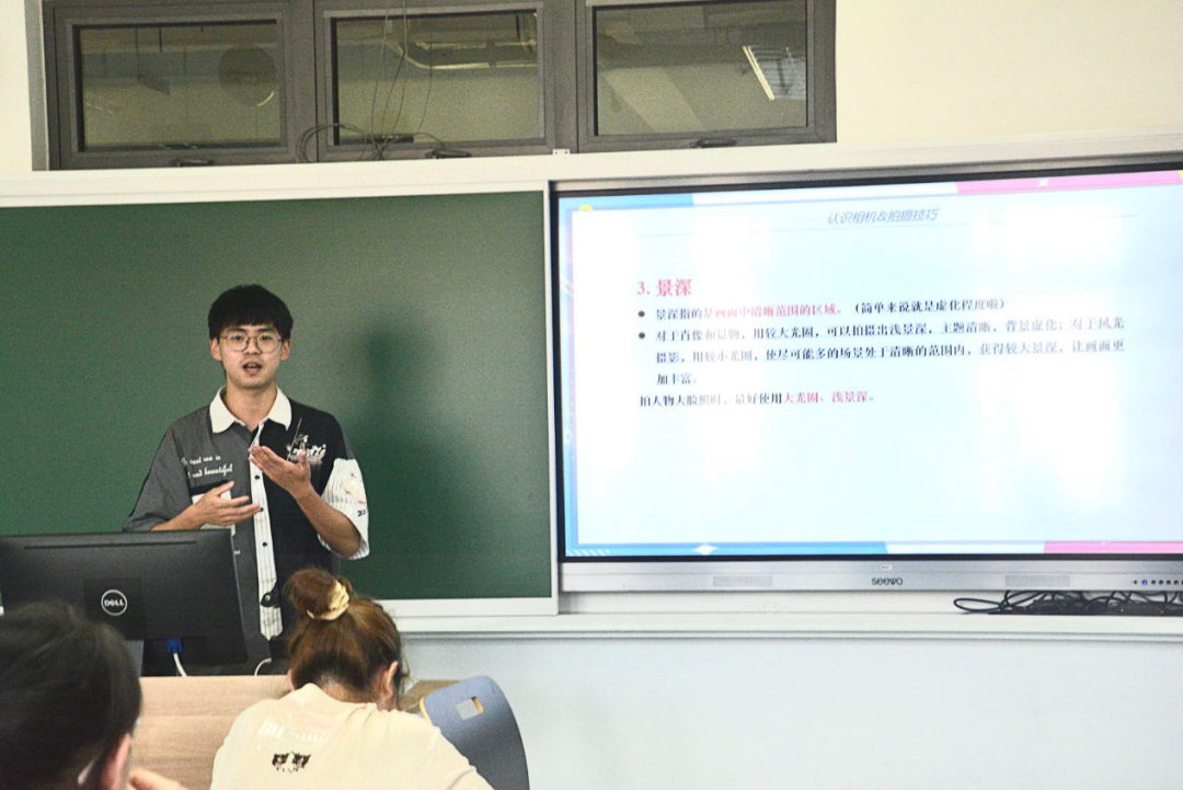 随后,前宣传部部长蓝云霄用丰富的图文素材为大家讲解关于摄影的基础知识及摄影的小技巧,着重介绍了新闻稿照片的注意事项和要求,包括全景照片要求、重要人物正面形象、远近距离拍摄要求、细节拍摄、构图平衡等多方面内容。通过鲜明的图片对比,给每一位成员以更直接的体会。同时提醒信宣部成员培养提前到场的时间观念,以便更好完成活动照片的拍摄工作。