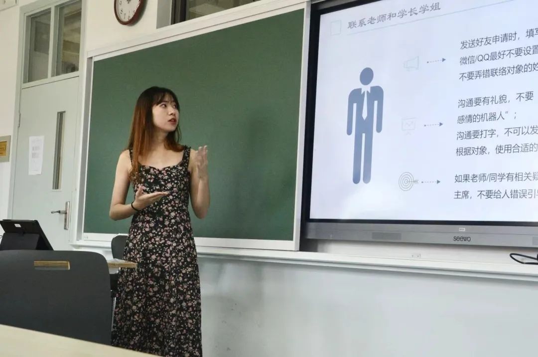 首先,团委副书记李梦媛为大家讲解公文礼仪的相关知识。她介绍了一些常用公文,正确的电邮格式、短信格式,以及如何联系老师与学长学姐。她通过风趣幽默的语言,告诉成员们掌握良好沟通能力的重要性,同时也介绍了常见问题和其他注意事项,最后表达了对新生的期待与祝福。