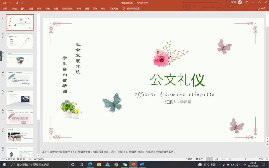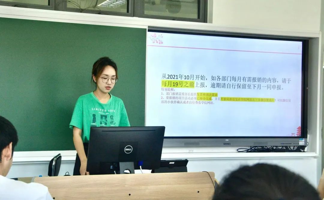 学生会的新成员进行培训,2021级学生会全体成员准时出席。本次会议聚焦学生会建设工作,旨在提高新一届学生会成员的综合素质,讲解学生会公文礼仪,摄影基础及技巧和办公室报销事项,让学生会的新成员能够更加顺利地开展学生会的日常工作。