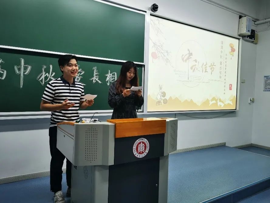 13点30分,活动正式开始,2021级社会工作专业的柳世博和李欣妤同学担任主持,他们向大家介绍了本次活动的主要流程与活动内容。在室内环节中,同学们一起做月饼,猜灯谜,进行中秋知识抢答和听歌猜曲等小游戏;在室外环节中,同学们将组队进行定向越野,打卡华师大校园中饱含记忆的地标。
