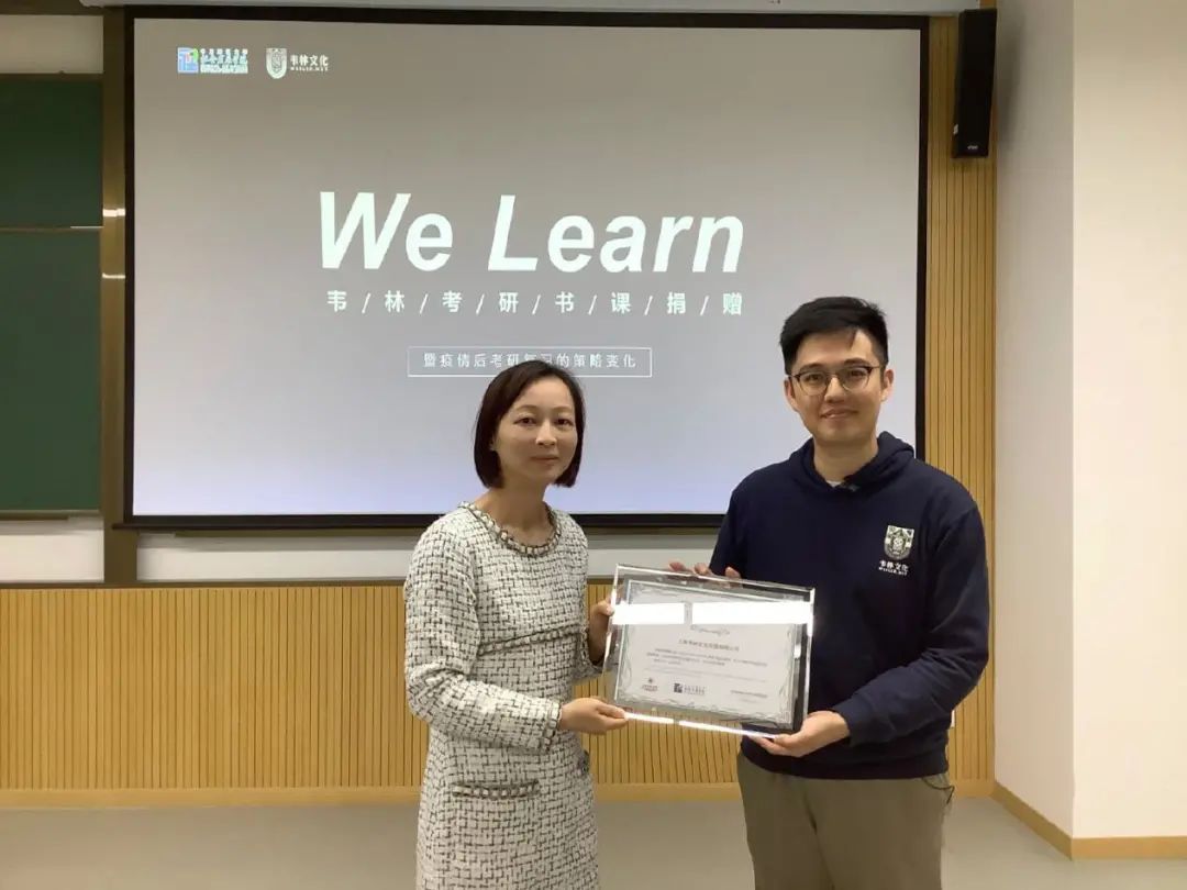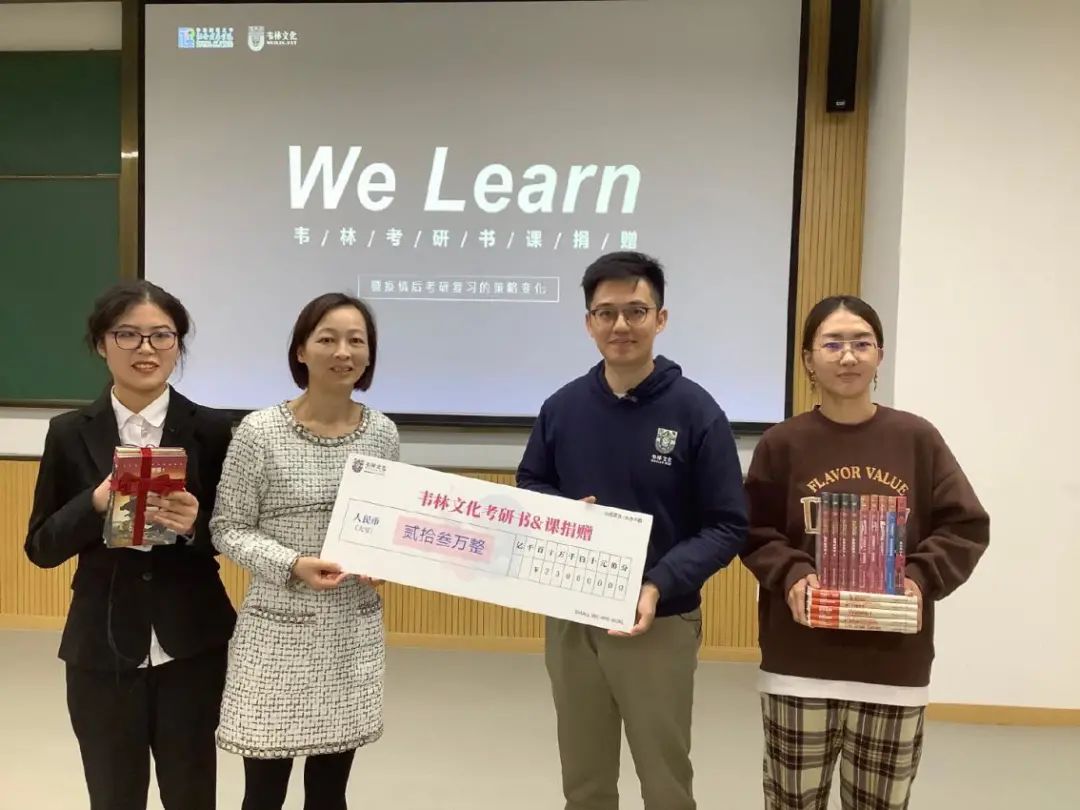 、法学院的同学们捐赠了价值23万余元的课程和书籍,其中包含100余套22韦林考研英语全程班系统课程和120余册由韦林文化出版的英语双语课外读物、《恋词7000》、英文终身学习类书籍等。为表感谢,黄燕老师代表木瓜视频