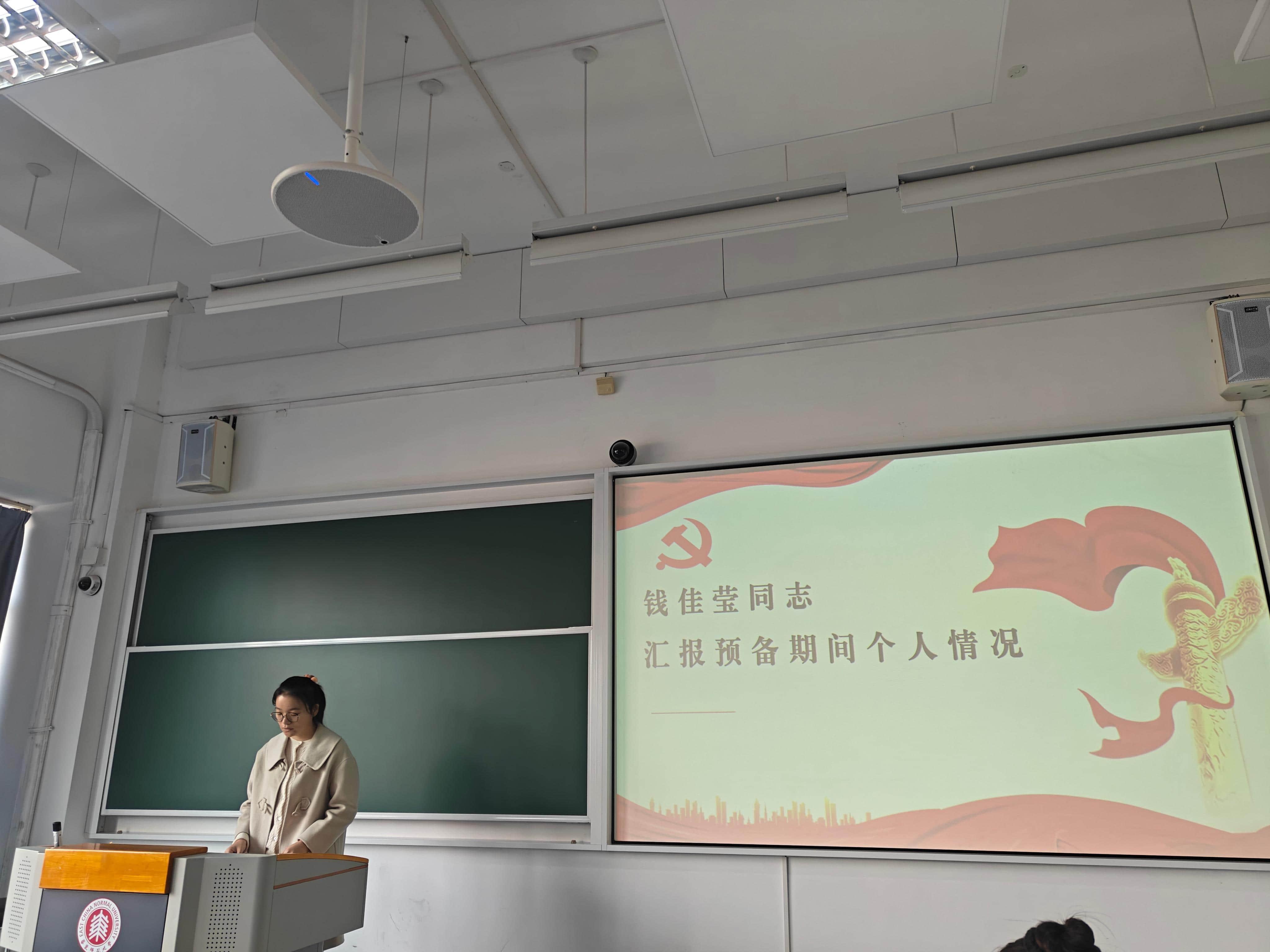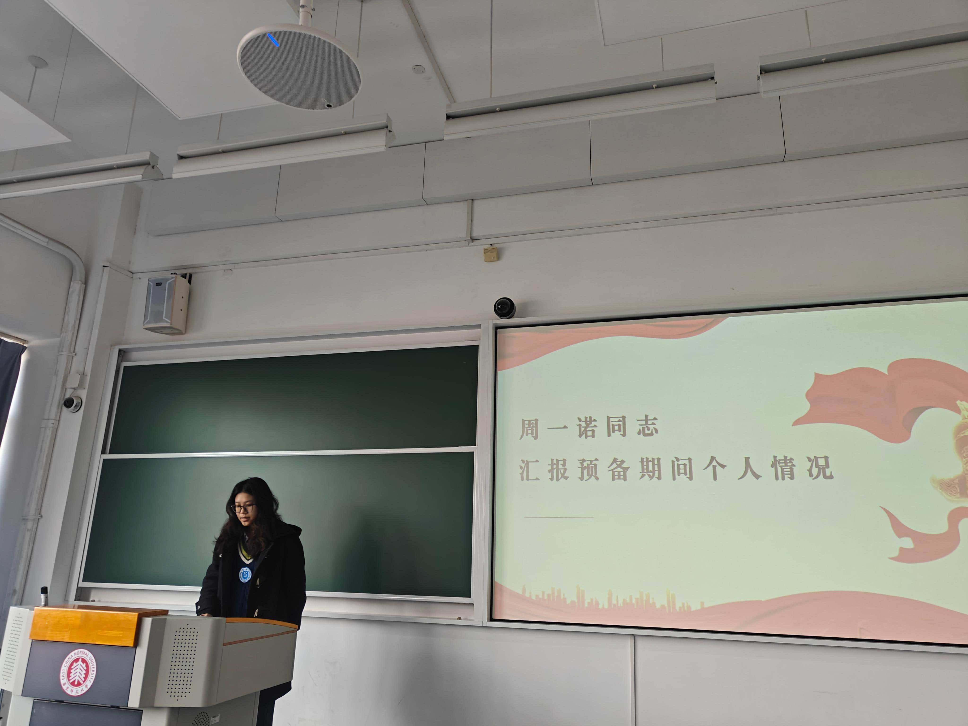 预备党员转正大会由组织委员乔周丽主持,严格按照《中国共产党发展党员工作细则》规定流程有序推进。钱佳莹、周一诺、刘特三位预备党员依次向支部大会汇报其预备期内的思想动态、学业科研进展及专业实践情况,全面展现了预备期内的思想与行动双重成长。培养联系人和参会党员就三位同志在预备期的日常表现展开充分讨论并发表意见建议。经无记名投票表决,三位同志均以全票通过,按期转为正式党员,报上级党委审批。