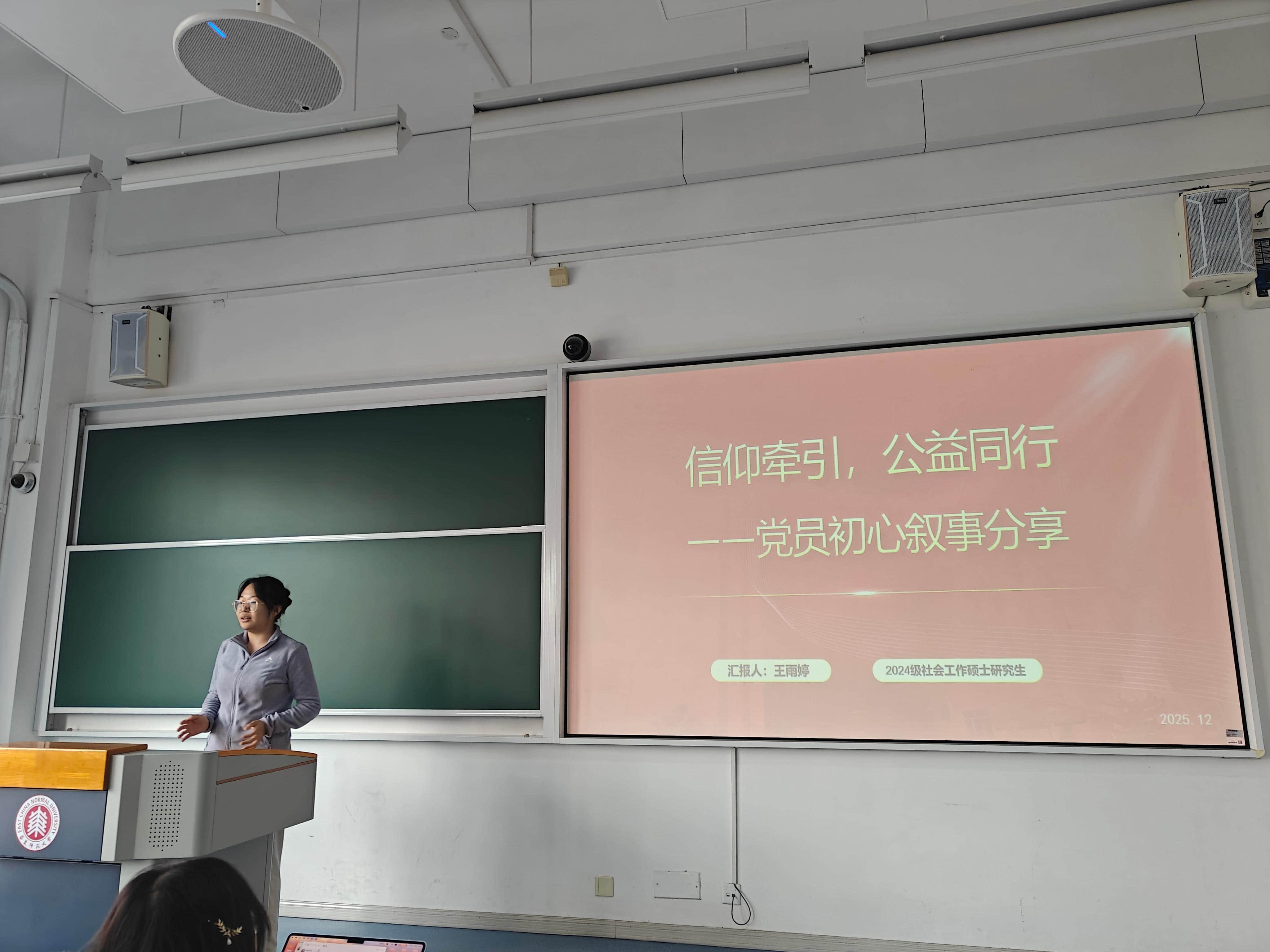 在沪甸义卖活动中凝聚公益力量,在系列主题党日活动中深化理论学习,在社会服务中引导党员将专业知识转化为真正的为人民服务,社会工作系硕士研究生党支部的工作始终围绕“党建引领、专业赋能、实践育人”这一核心思路稳步推进。在未来工作中,支部将继续深耕“党建+专业”融合模式,擦亮社会工作特色品牌,以更扎实的举措、更创新的形式,引导全体党员在社会工作领域践行初心使命,为社会发展贡献青春力量。
