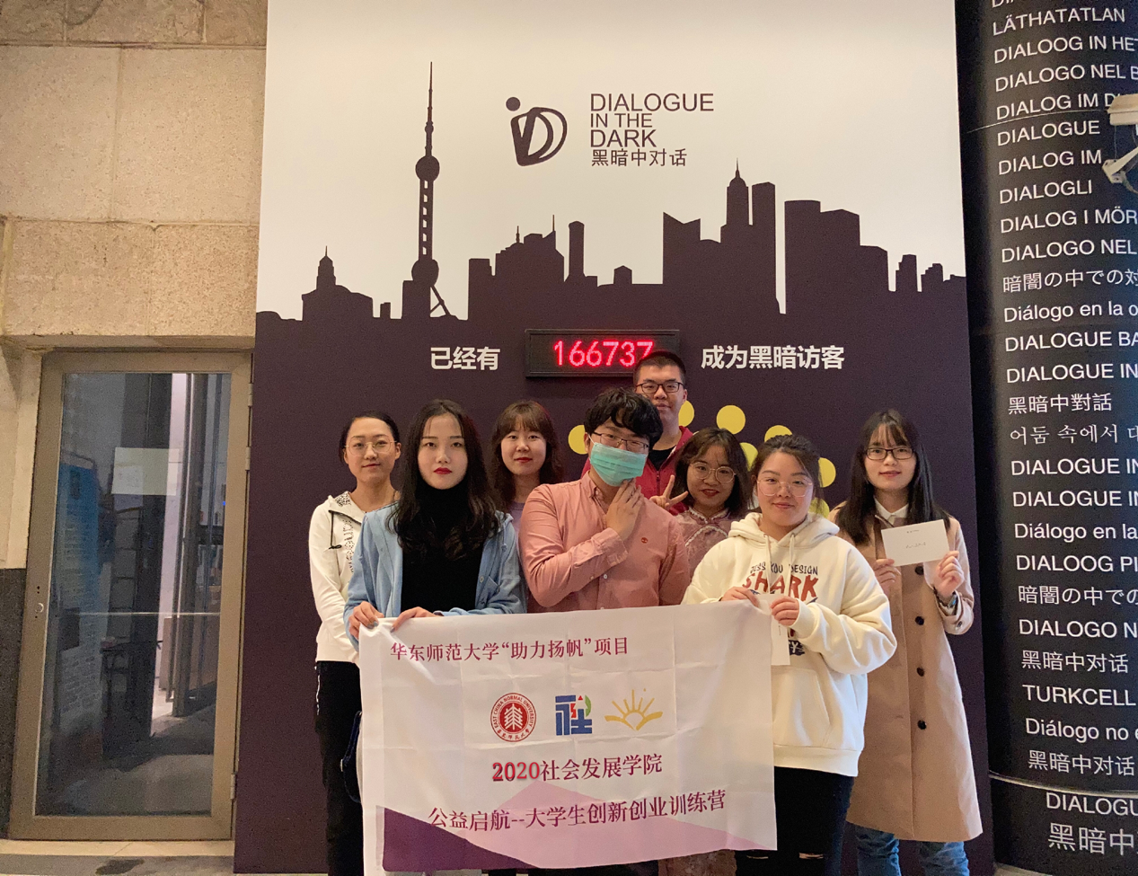 2020年11月15日上午十点,“助力扬帆”第五参访小队来到黑暗中对话体验馆,队伍八名成员在体验馆向导Summer的带领下,开启了紧张刺激的黑暗之行。