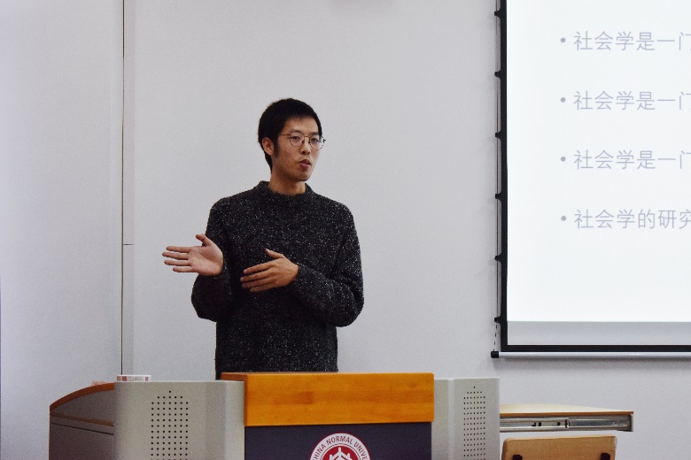 交流会的最后,社会学系2015级本科生、教师教育学院学科教学(历史)2019级研究生海洋同学为我们带来了“当社会学碰撞中学教学”主题分享。海洋学长以自身求学和就业的经历为我们分享了社会学与教育学的融合,以及社会学与中学教学联系的紧密性。例如,海洋同学认为社会学研究方法和理论框架是可以引入中学历史教学之中的,并以五四运动和清朝中期的危机为例,生动地说明了如何运用社会学中的问题意识驱动中学课堂,进行教学方式的改革实践。海洋同学还表示他在未来可能会在中学教学过程中运用社会学方法,例如:用SPSS分析学生成绩、用定性方法分析学生个体的行为等,令人耳目一新,为同学们跨专业学习与就业提供了新的路径。