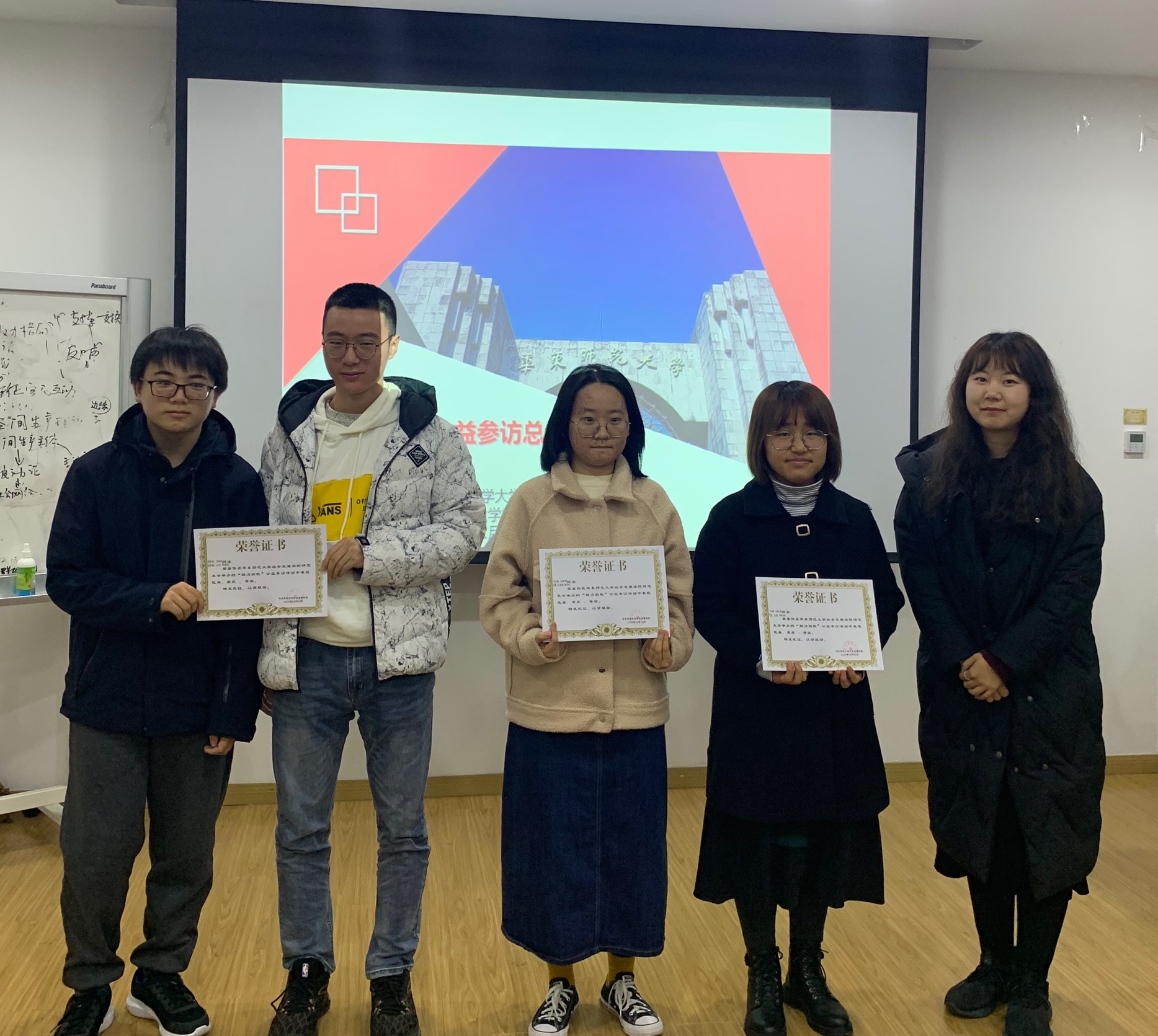 最后,总结会全体成员进行了合照留念,嘉宾为获奖同学们颁发了证书和奖品。下面为获奖名单: