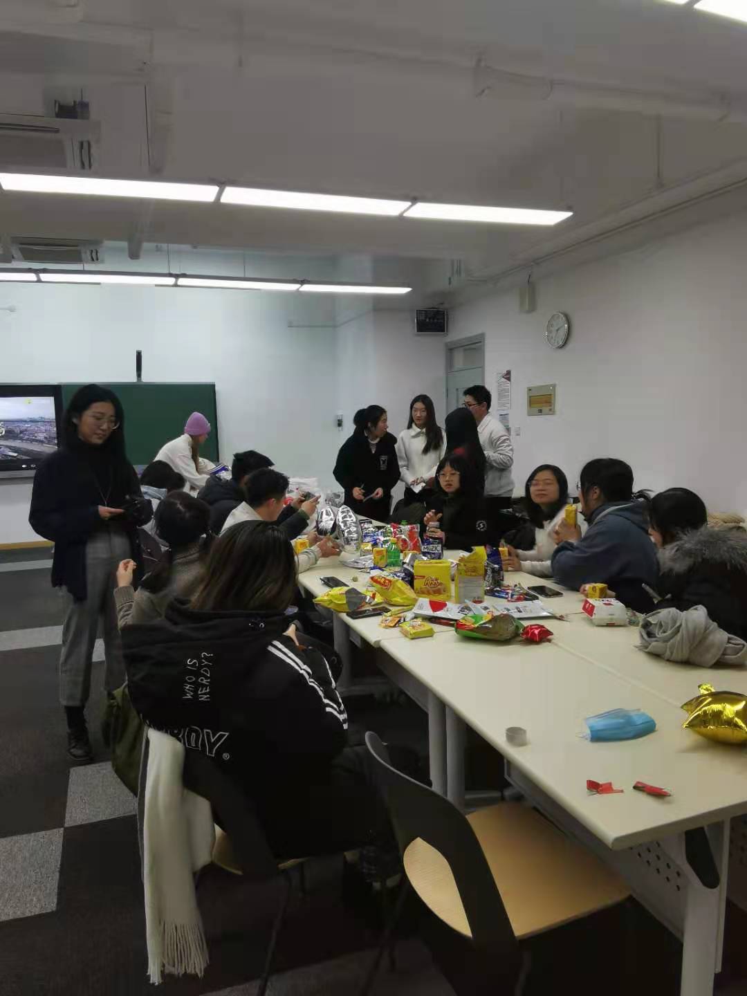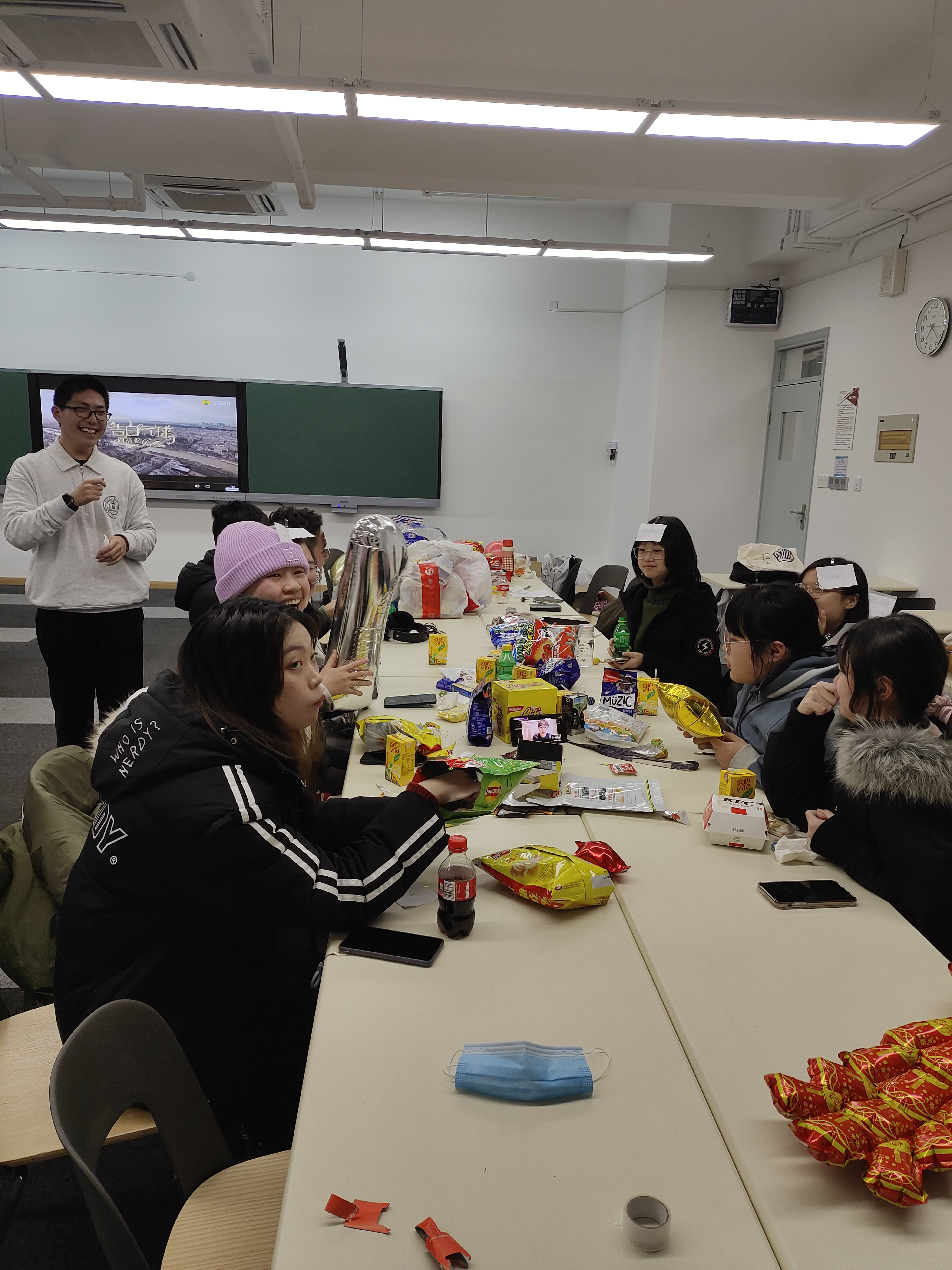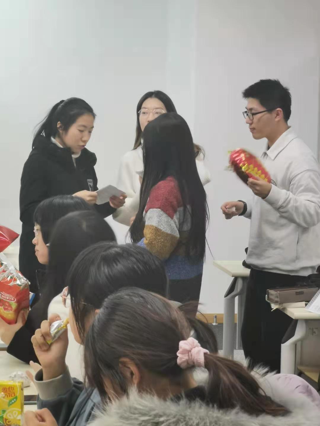 2021迎新晚会”在四教208圆满结束。在主持人和工作人员的带领下,来自2018级、2019级和2020级三个年级的同学们总结过去,祝福未来,茶歇游艺,喜迎新年。