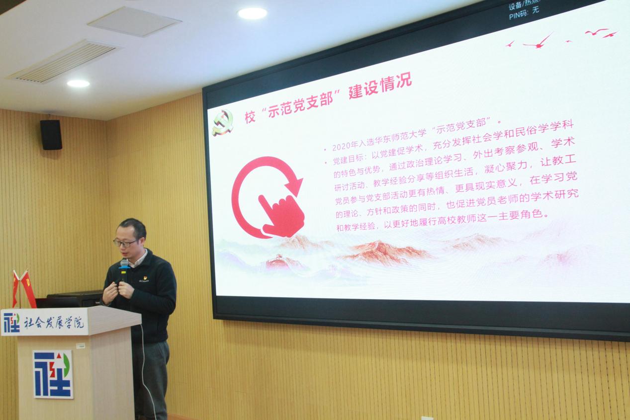 3个基层党支部分别就支部工作进行汇报。校首批示范党支部社会学系和民俗学联合教工党支部书记姚泽麟围绕以党建促学术的支部特色,阐述支部充分发挥社会学、民俗学学科特色,服务社会、助力乡村振兴的系列行动。