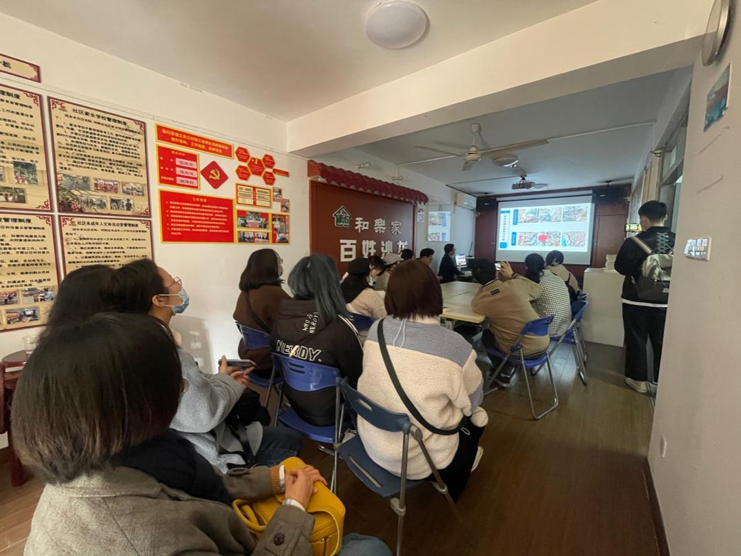 参观结束后,社区工作人员带领同学们到社区居委会的活动室,给大家详细地介绍了社区的民主协商议程和制度。其中主要介绍了工农三村的“三上三下”工作法,即“一上一下聚共识”、“二上二下立方案”、“三上三下定责任”的工作流程,社区通过自组织的和乐家议事会,制定固定的工作流程,由党总支引领居委会组织协调,业委会提供资金支持,物业完成专业服务的提供和执行,同时也让居民能够协商参与社区治理,破解了该社区小区绿化带调整、扔垃圾洗手难、社区微改造等问题。在社区工作人员介绍完后,同学们也就自己感兴趣的部分提出了自己的问题,比如社区人员构成、业委会资金来源等问题,社区工作人员也一一做了解答。