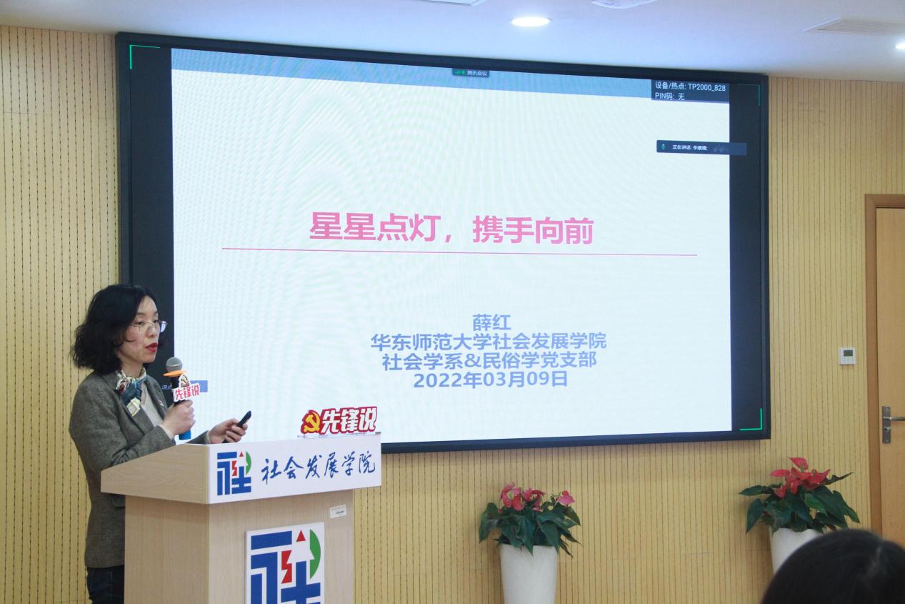 关工委联合举办“先锋说”之“益”起向未来主题活动。活动通过视频直播方式举行,人口所硕士研究生党支部纪检委员王紫瑶主持。学院党委书记熊琼,院长、党委副书记文军,党委副书记、副院长黄燕,副院长黄晨熹,副院长赵晔琴,党委委员陆芳萍,关工委委员王大犇、周玉凤,师生党员及入党积极分子等线上线下共计近130人参加活动。