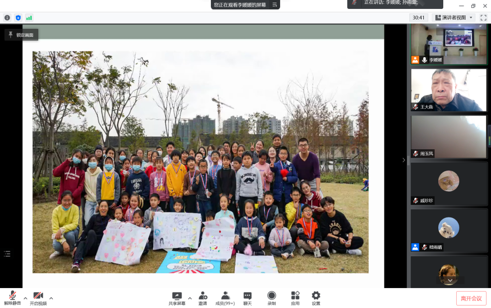 有近27年党龄的薛红老师介绍了亲身志愿服务的经历和开设的公益相关课程,并以星火村——一个城中村的故事向我们分享了其公益实践。一场给城中村孩子的运动会、“行走吴泾马拉松+”亲子迎新活动……丰富的活动形式和内容展现了星火村孩子受益于公益的成长与收获。