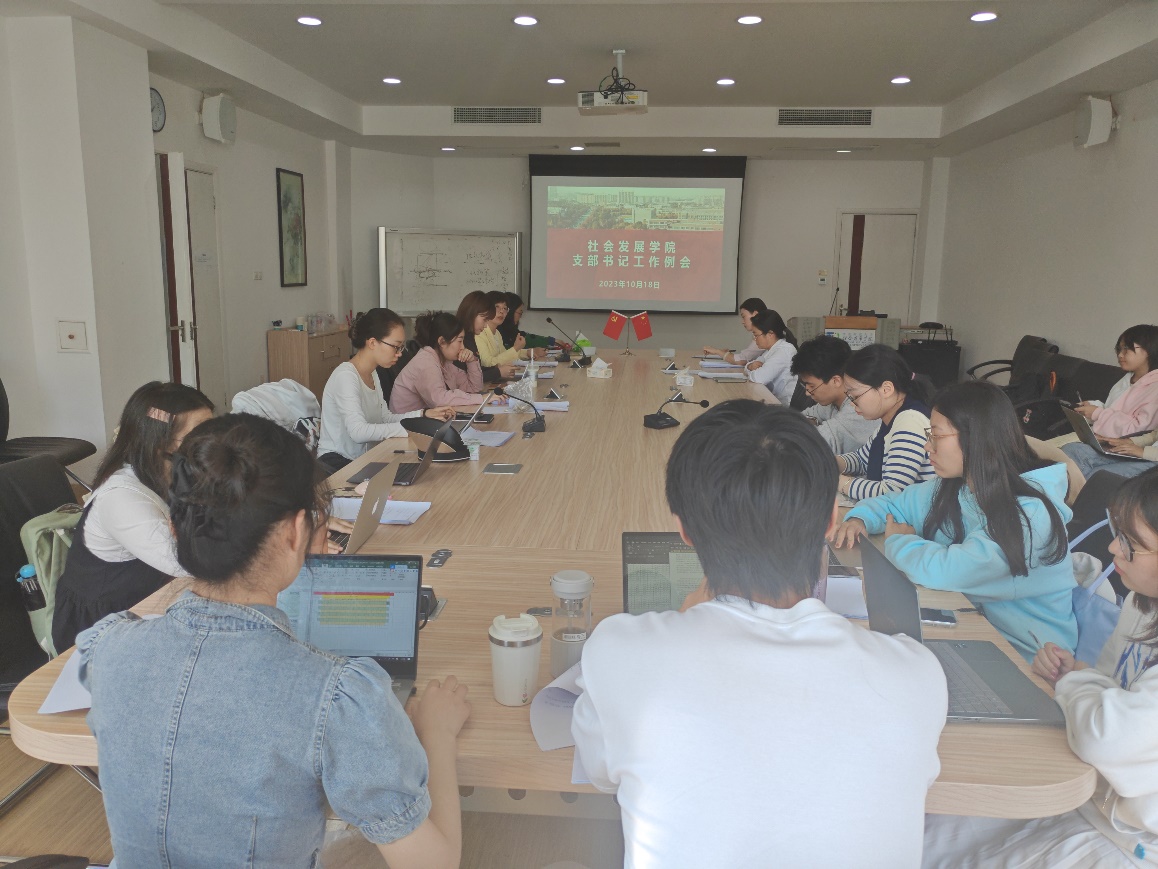 随后,各基层党支部结合学校第十四次党代会精神,介绍了本学期支部工作思路。社会学系硕士研究生党支部书记姚柯提出将重点集中在三会一课的落实、创新支部工作、调动全体党员积极性上,结合支部成员职业规划需求,开展诸如选调生分享会、读博分享会等。人口所硕士研究生党支部书记金雪玲提出会切实为同学办实事,依托与学院关工委的结对来开展高质量就业分享会。社会工作系硕士研究生党支部书记班昀清提出将致力于发挥社会工作专业助人特色,突出支部在社会服务方面的优势。博士研究生党支部书记韩煦强调将从服务博士生的角度出发,做好需求服务。