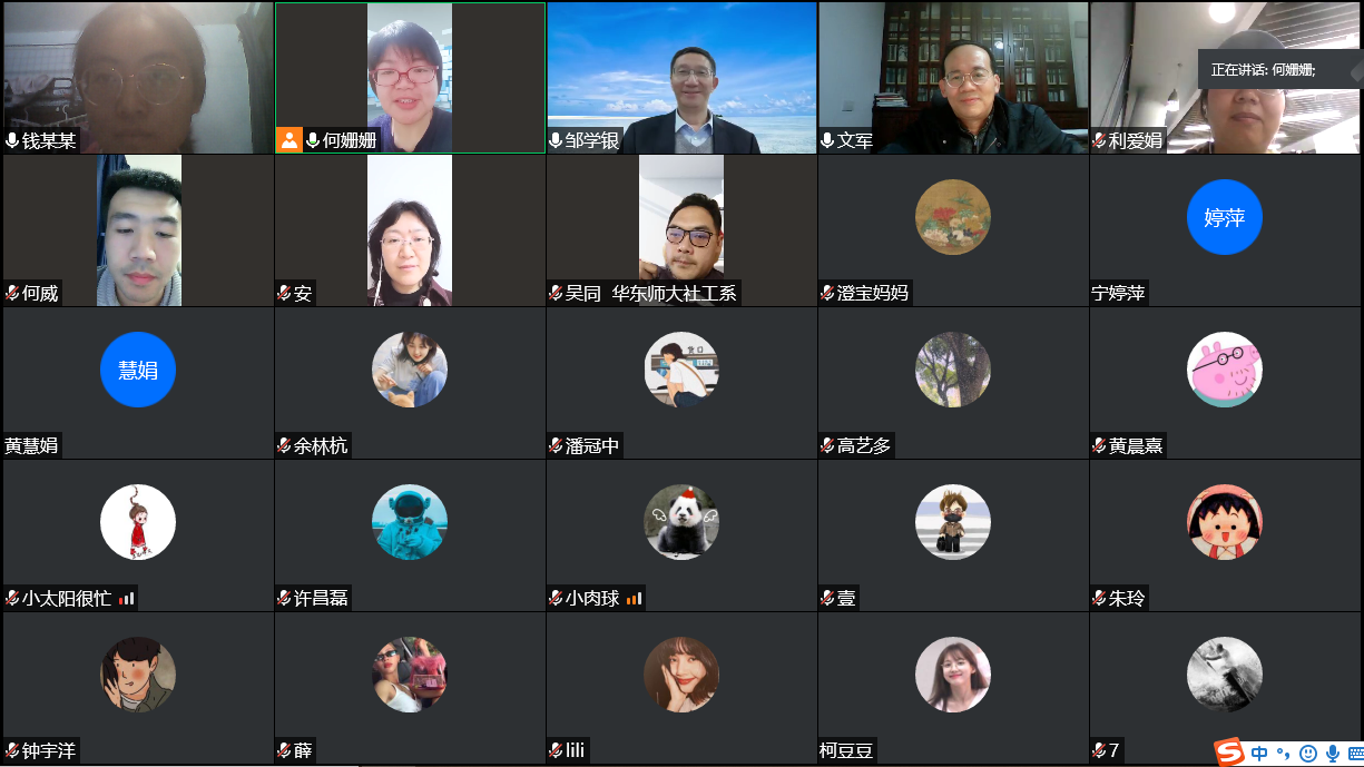 院长文军教授、副院长黄晨熹教授、社会工作系主任安秋玲副教授等老师出席并参与了交流,讲座在社会工作系副主任何姗姗副教授的主持下有序进行,最高在线人数达到130人左右。