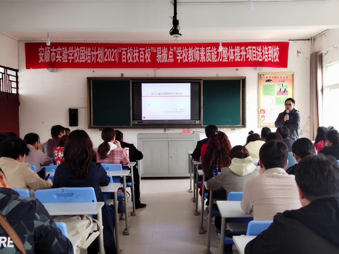 下午,社会工作和人口研究所教工联合党支部书记吴同为中学的近60名教师提供留守儿童心理干预辅导。吴老师首先结合沙子中学的实际情况,从留守儿童的心理需要、原因、机制进行分析,对留守儿童心理行为问题的表现进行具体阐述,引起了老师们的共鸣。接着,吴老师借助“优势视角”理论介绍了留守儿童教育的具体介入方式,从理论框架、干预方式、提问技巧等全面铺开阐述,强调通过反复提高学生的自信心、积极性来发挥他们学习的潜能,既连天线又接地气。最后,在场老师们进行现场演练,大家对优势视角理论非常感兴趣,现场气氛十分热烈。丁玉婷老师还为师生播放华东师大宣传片,在孩子们内心播下大学的种子。