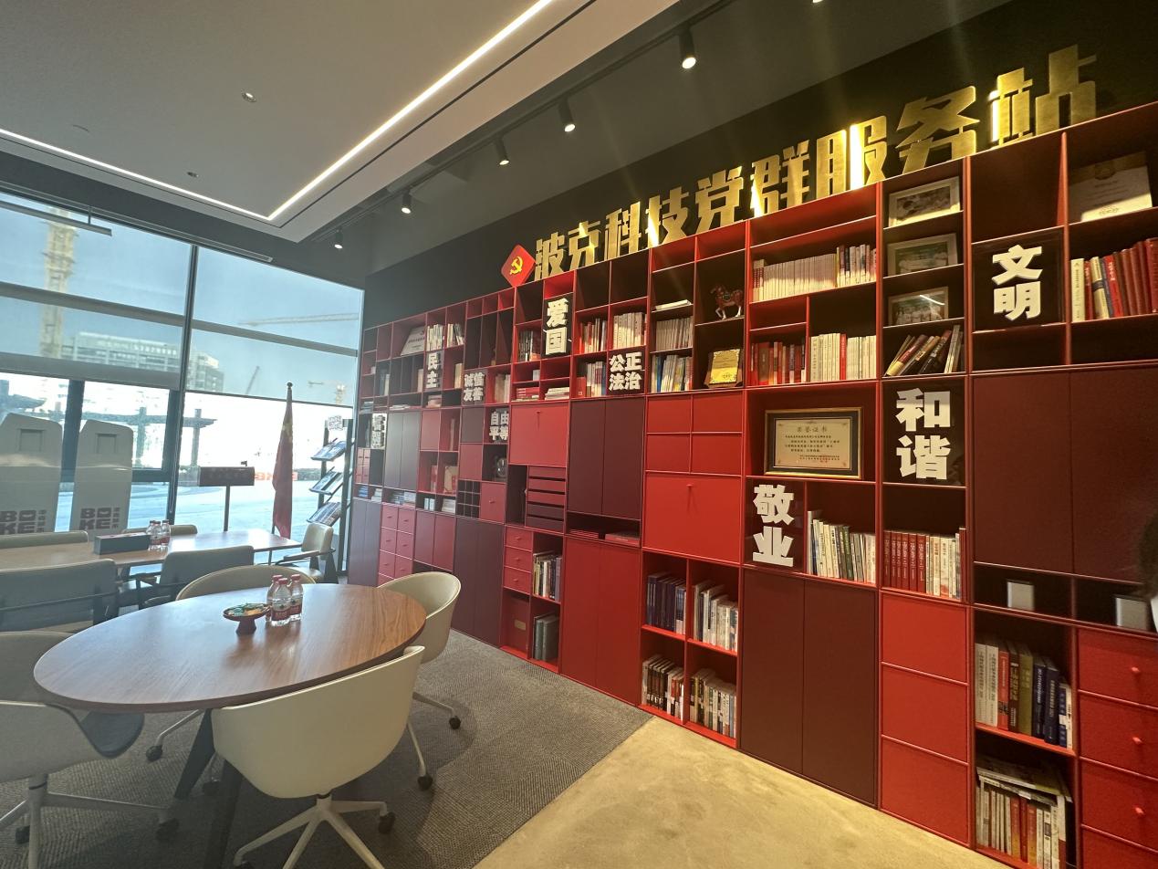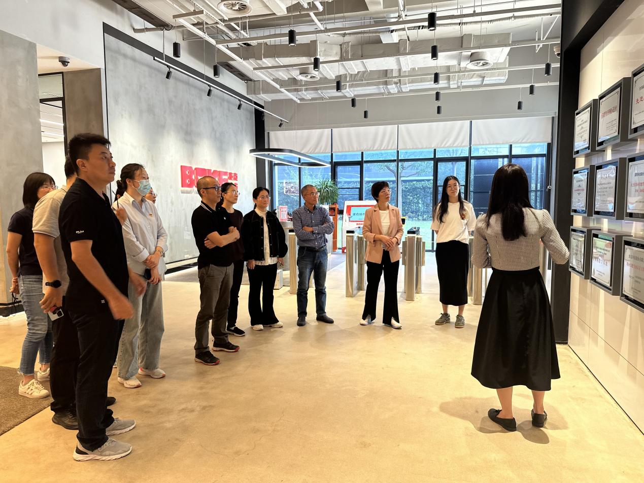 师生在普陀区波克科技股份有限公司开展党建交流。师生党员参观了波克城市公司的劳模创新工作室、波克科技党群服务站、党建+宣传墙等,对这些红色阵地的工作模式有了详细的了解,充分感受到了波克城市公司的党建氛围和红色文化。