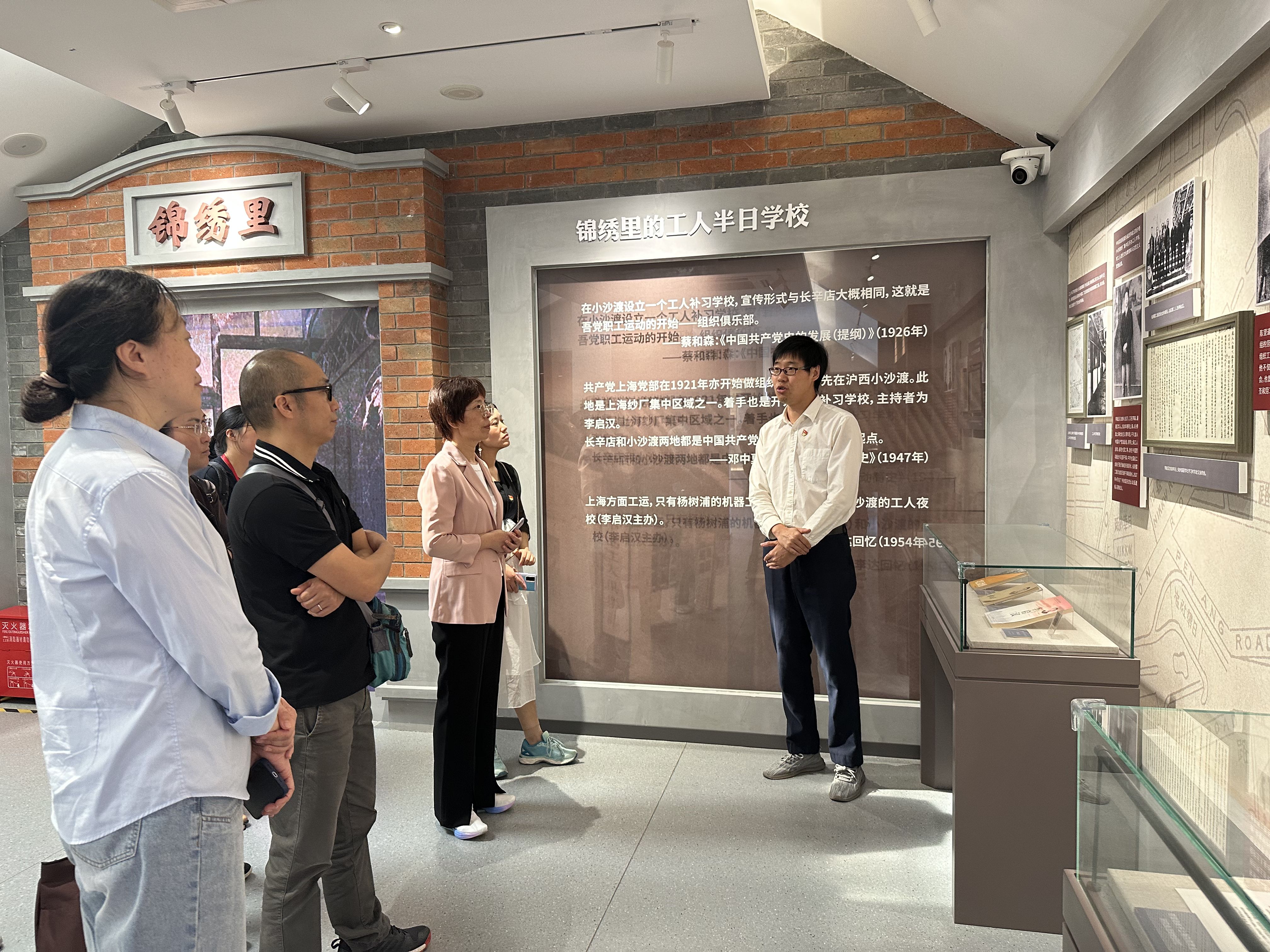 下午,师生党员一起参观了普陀区沪西工人半日学校史料陈列馆。馆内共设置了火红序幕、峥嵘起步、荣耀征途、火种绵延四个展区,按照时间顺序描述了半日学校的发展沿革。师生党员们深刻了解了中国工人阶级是如何首次以独立的姿态登上政治舞台,建立了中国共产党的第一所工人学校,创办了沪西地区第一个基层党组织。半日学校复原场景区域真实反映了当年学校教员们工作、居住和工人们上课的教室等场景以及中国共产党早期组织创办半日学校的艰辛历程。