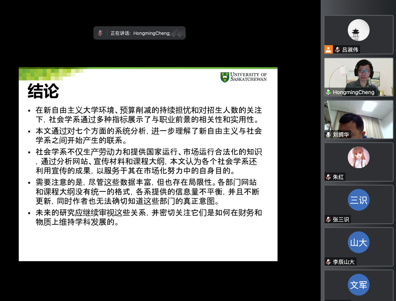 程教授提到,在这种新自由主义的强势入侵下,加拿大社会学界也存在着对新自由主义教育的抵抗。他以《加拿大社会学评论》发文的倾向性、学者拒绝功利化的研究趋向等等为例,呈现了这种抵抗行为的具体方面。