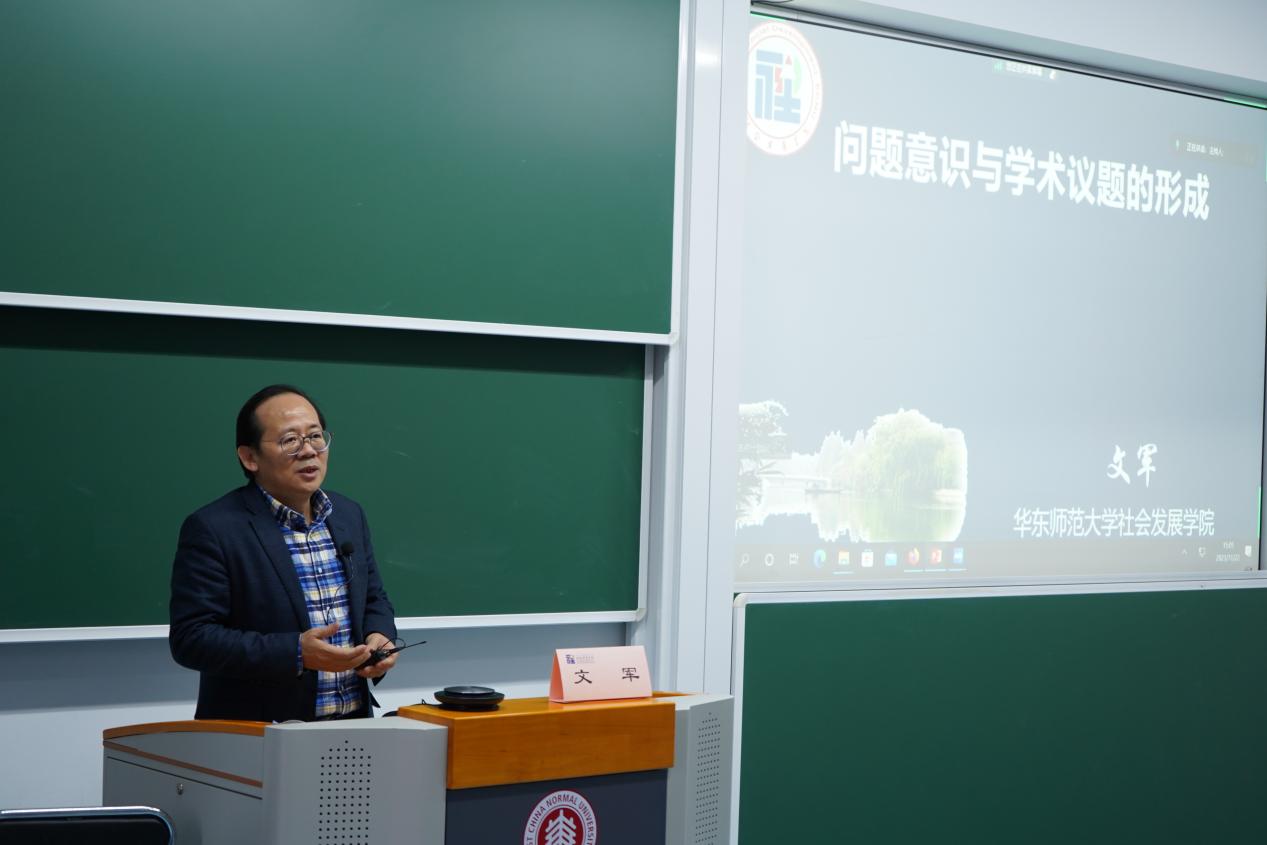 文军教授在报告中首先强调了问题意识在学术研究中的关键性:良好的问题意识是进行学术研究的前提,缺乏问题意识可能导致所写作的结果只能停留在经验描述层面,无法达到真正的学术深度。随后,文老师详细讲解了学术研究中问题意识的相关细节内容,包括问题意识的含义、特征、来源等。接着,文老师介绍了学术研究中常见的问题类型以及问题意识的形成逻辑,指出研究工作的主要目的是建构理论或更好地补充理论。最后,文老师分析了各类期刊的学术文章标题,强调学生应具备辨析论文质量的能力,从而科学高效地进行阅读。文老师用幽默诙谐的例子让原本艰深的要领通俗易懂,现场气氛热烈。