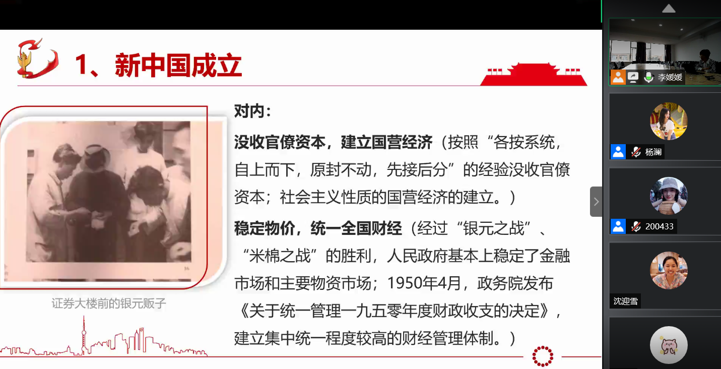 随后,学院党委书记熊琼为毕业生党员作《忆峥嵘岁月,展奋斗宏图》的专题党课,从探索篇、改革篇、强国篇三章向同学们展示了新中国70多年来的奋斗历程。从1949至今,从新中国的成立到迈入新时代,熊书记以大量的历史事实、图片等带领同学们感悟新中国的变迁。同时,熊书记还寄语毕业生党员,要扣好人生每一粒扣子,立志高远,创新思路,与国家、民族同命运。