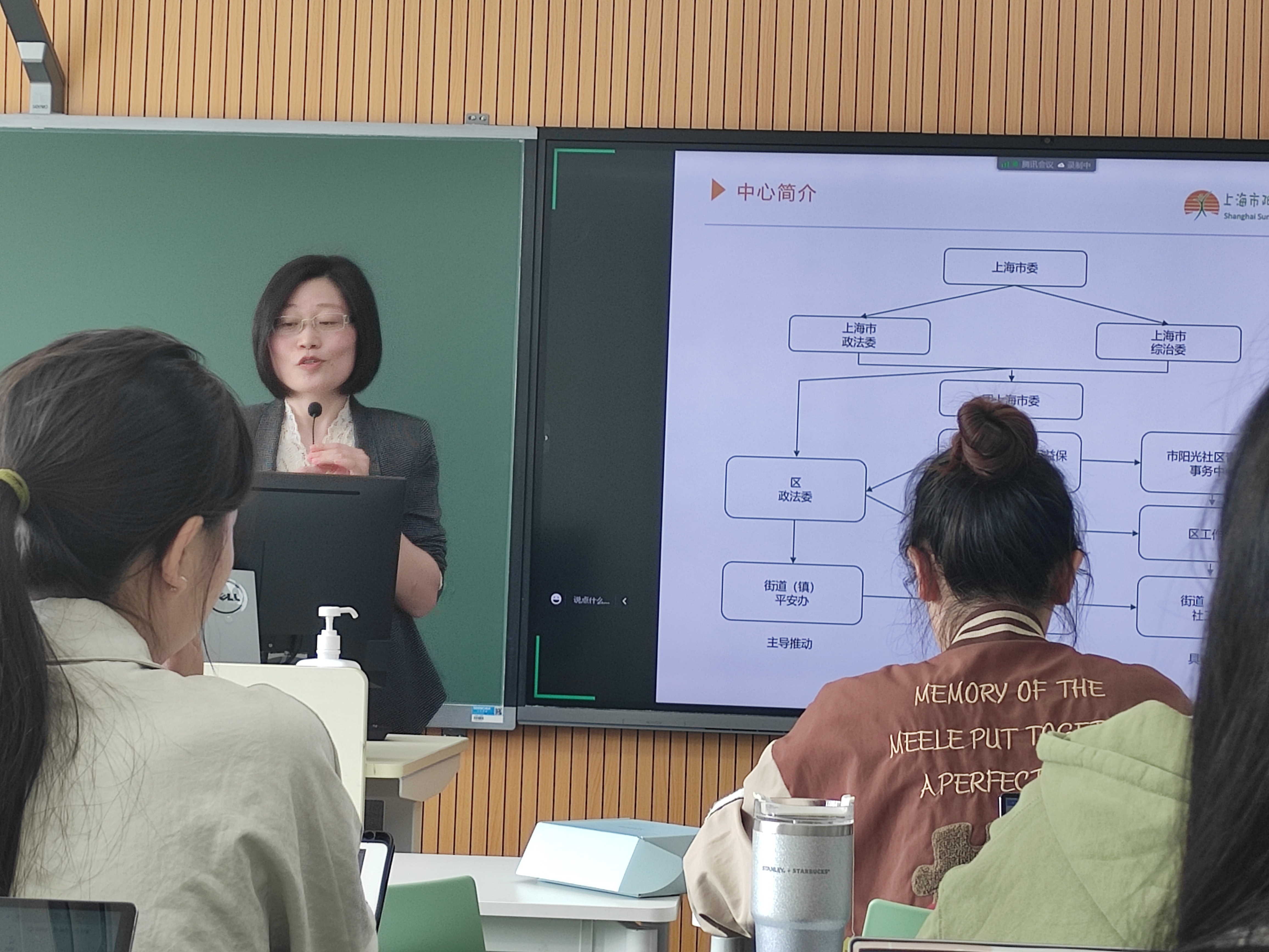 何姗姗老师的邀请,来到了《社会工作行政》课的课堂,以上海市阳光社区青少年事务中心为例,为大家分享了社会工作行政动态管理,帮助同学们对社会工作行政有了更加深刻的认识。