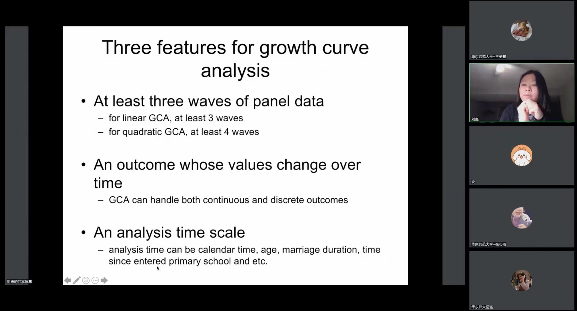 社会工作系主办的沪江名家讲坛海外学者系列讲座第19讲暨研究生高水平系列课程第9期,于腾讯会议及微信直播平台顺利开展。密歇根州立大学社会学教授、研究生项目主任,家庭与人口健康实验室的创始人兼主任刘惠老师,为大家带来了“纵向数据的分析”主题的线上讲座。讲座在木瓜视频