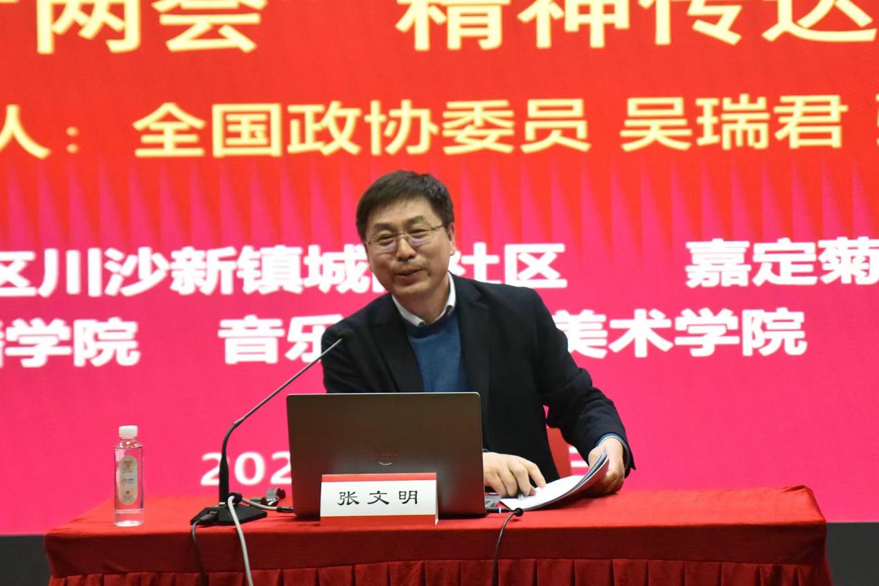 院长文军总结讲话,他指出,两位全国政协委员对两会精神的传达真实、精准,使参与此次学习会的全体人员深刻认识到全国两会的重要意义,并准确把握两会的精神实质。同时,非常感谢两位政协委员及时地将老百姓的声音向上传递,充分发挥了全国政协委员的桥梁纽带作用。
