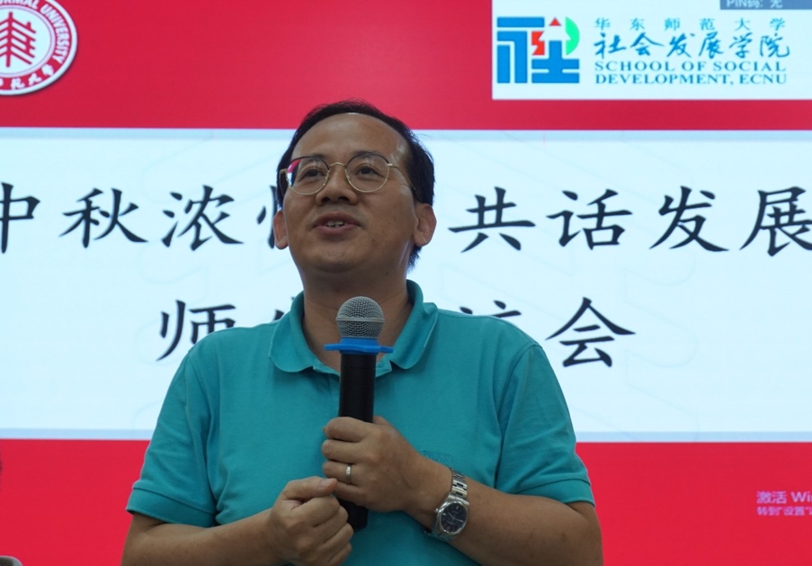 院长文军教授介绍了师生交流平台搭建的总体情况,文军老师指出学院将通过交流平台积极接受同学们的意见,并积极推动学院与书院的管理相协调,提升学院内部师生交流的频率与质量。本次交流会借中秋节的契机,促进师生感情联络,为促进可操作和执行的制度建设和出台而努力。最后文军教授倡导广大师生要保持真诚交流,提升学院凝聚力,锻炼个人处理人际关系的能力,为今后走向社会做好准备。