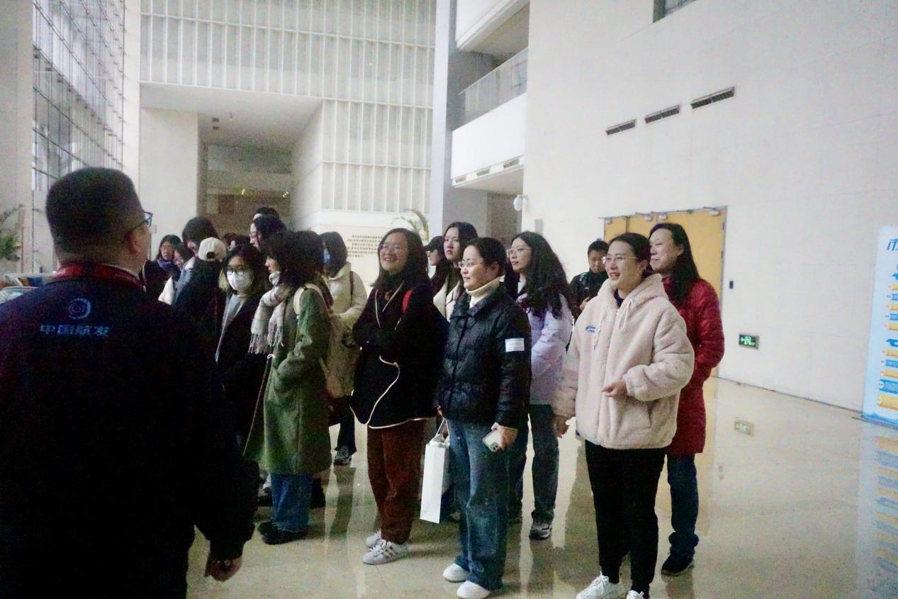在方筱的带领下,师生们参观了公司沙盘和发动机构造展览馆。方筱从商发的发展历史、建设规划、发动机研发与生产过程、企业精神等方面详细全面地介绍了商发的基本情况。通过展厅内精细的零件模型和实物,大家能够切身感受到发动机从设计、生产、试验到投入各个环节所经历的技术难点与问题,也深深震惊于几代工程师通过无数次的试验才能造出一台航空发动机。