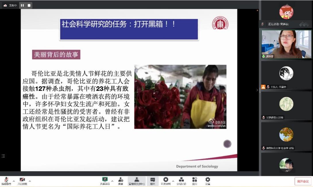 社会学系副教授吴越菲老师主讲。本次讲座在线上进行,吸引了百余位各大高校学生一起学习探讨。