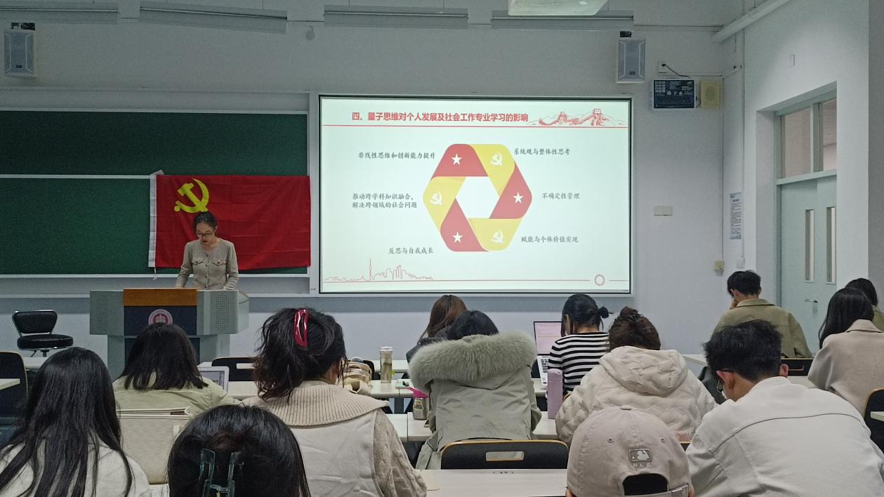 学生党支部集中开展“量子思维与老子思维”主题读书学习活动。人口所硕士研究生党支部、社会学系硕士研究生党支部、社会工作系硕士研究生党支部、本科生党支部等近100名学生党员参加学习。旨在充分发挥学生党支部引领作用,通过集中性学习,深入开展党建引领推动学风建设,提升学生思维能力,进而促进学生卓越发展。